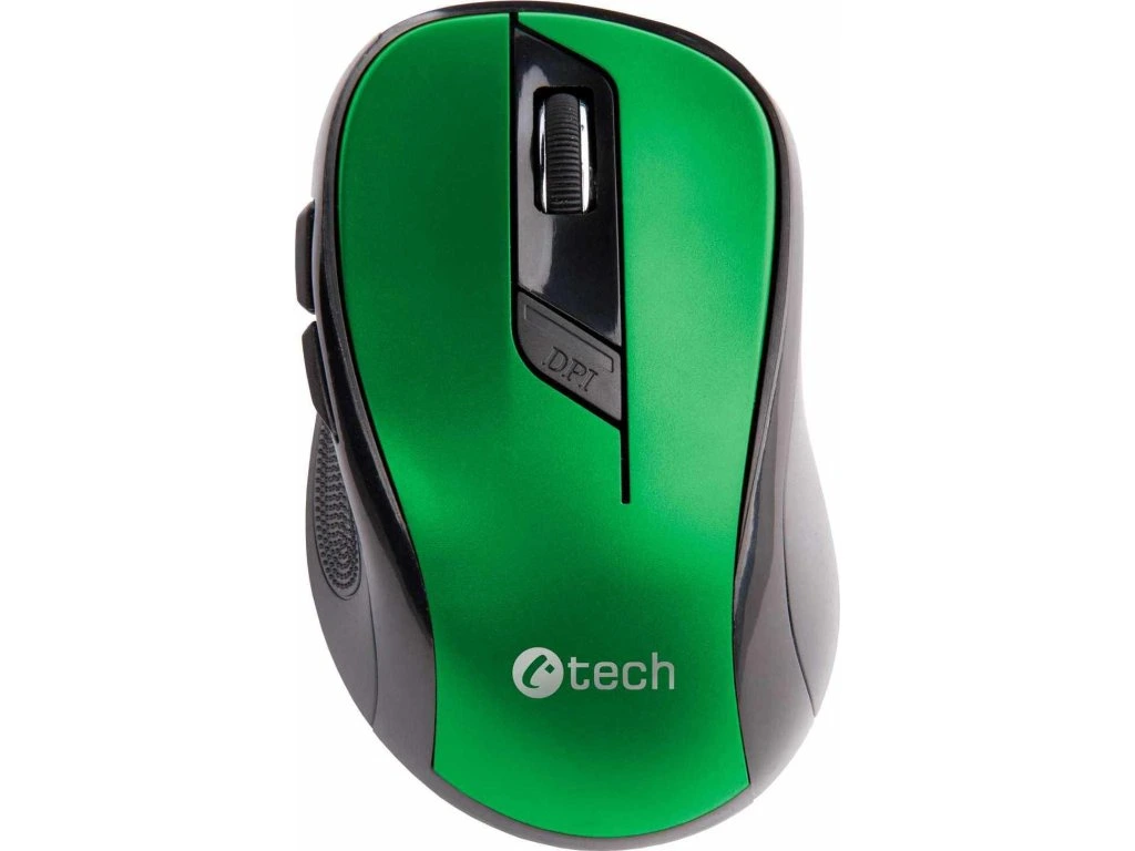 Myš C-TECH WLM-02, čierno-zelená, bezdrôtová, 1600DPI, 6 tlačidiel, USB nano prijímač