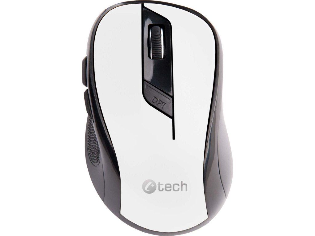 Myš C-TECH WLM-02, čiernobiela, bezdrôtová, 1600DPI, 6 tlačidiel, USB nano prijímač