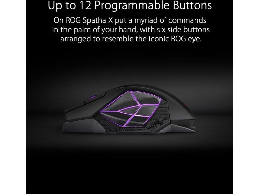 - Až 12 programovateľných tlačidiel - 12 programovateľných tlačidiel na ROG Spatha X vám umožní vykonávať nespočetné množstvo príkazov na dlani, pričom šesť bočných tlačidiel je usporiadaných tak, aby pripomínali ikonické oko ROG. Umiestnenie jednotlivých tlačidiel bolo starostlivo zvážené, aby boli na dosah, a všetky boli navrhnuté tak, aby poskytovali hmatový pocit kliknutia pre intuitívne a citlivé ovládanie.