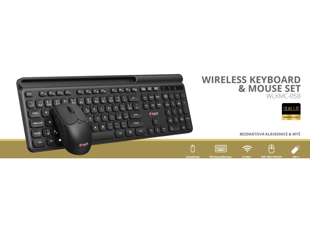 C-TECH klávesnice s myší WLKMC-05B, Bezdrátový set 2.4GHz, CZ, Černá