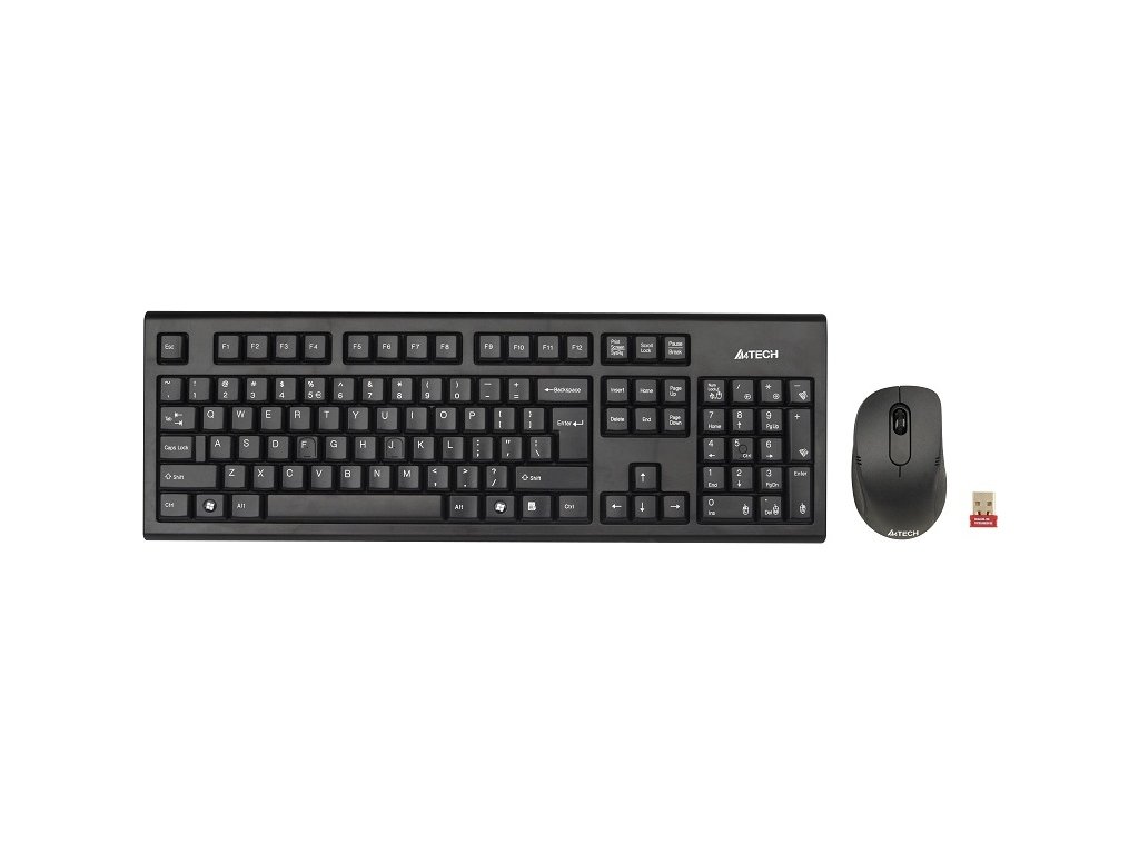 Súprava A4tech 7100N je bezdrôtová. kľúče. + bezdrôtové pripojenie. Optická myš V-Track,CZ/US, USB