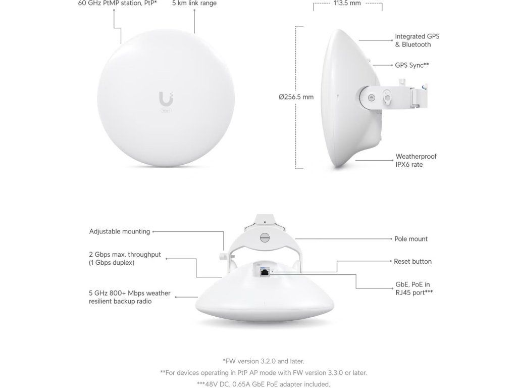 Wave-Nano je 60 GHz point-to-multipoint (PtMP) klientské zařízení s vestavěnou 5 GHz zálohou od Ubiquiti Networks s dosahem až do vzdálenosti 5 km+ a je ideální pro poskytovatele internetových služeb. Velice kompaktní a odolný zařízení je také vybaveno integrovanou GPS a Bluetooth pro jednoduché prvotní nastavení z mobilu přes UISP mobilní aplikaci. Zařízení podporuje mód bridge i NAT a v 60GHz spektru podporuje 2160 MHz šířku kanálu, tak i poloviční 1080 MHz. Maximální udávaná propustnost výrobcem při 16 QAM je 2 Gbps (1 Gbps full duplex).