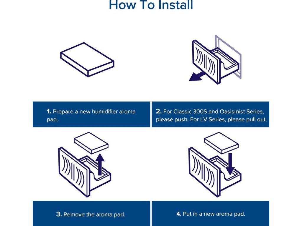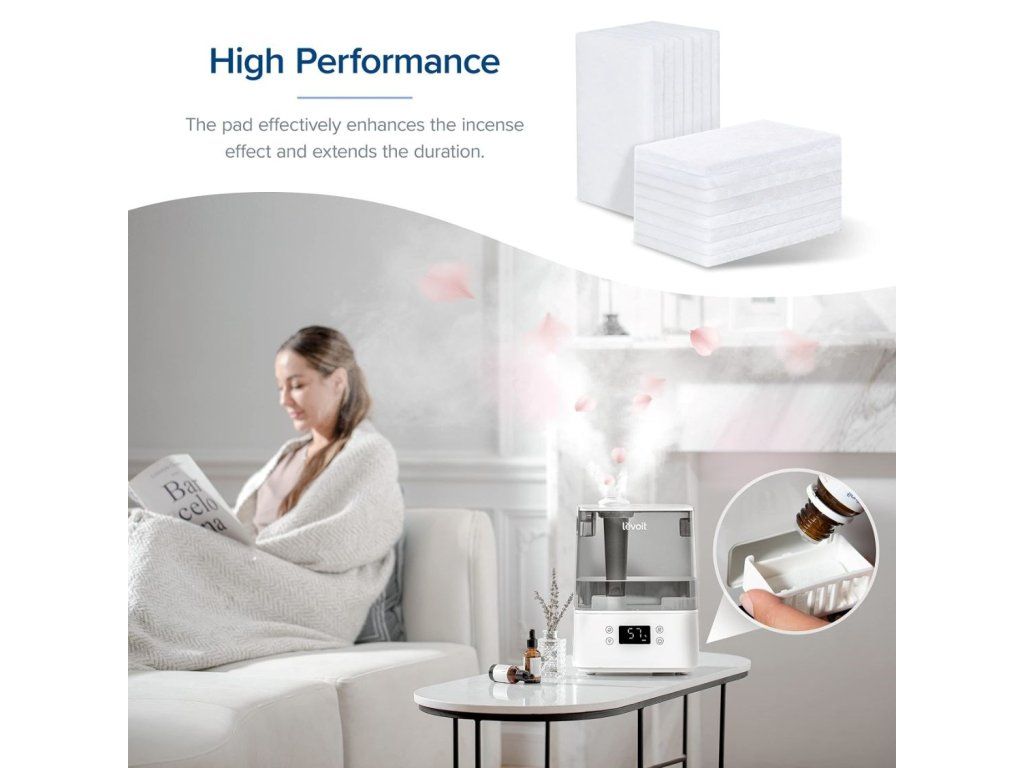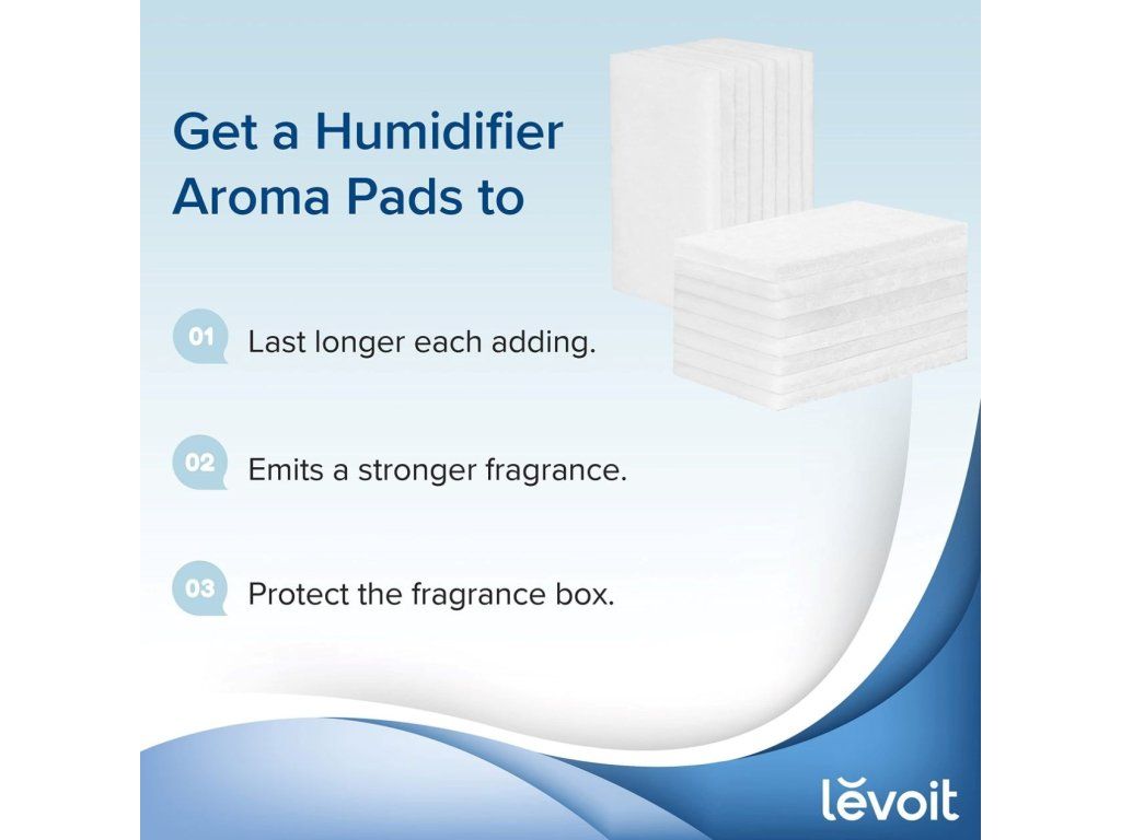 Vankúšiky na použitie esenciálnych olejov na aromaterapiu so zvlhčovačmi vzduchu Levoit. Odporúčame meniť aromatické vankúšiky v závislosti od frekvencie používania. Do zásobníka na vodu ani do základnej komory nepridávajte esenciálne oleje ani iné vonné látky. Esenciálne oleje pridávajte len do aromatických vankúšikov.