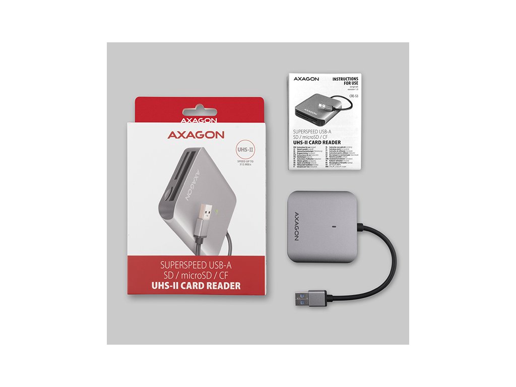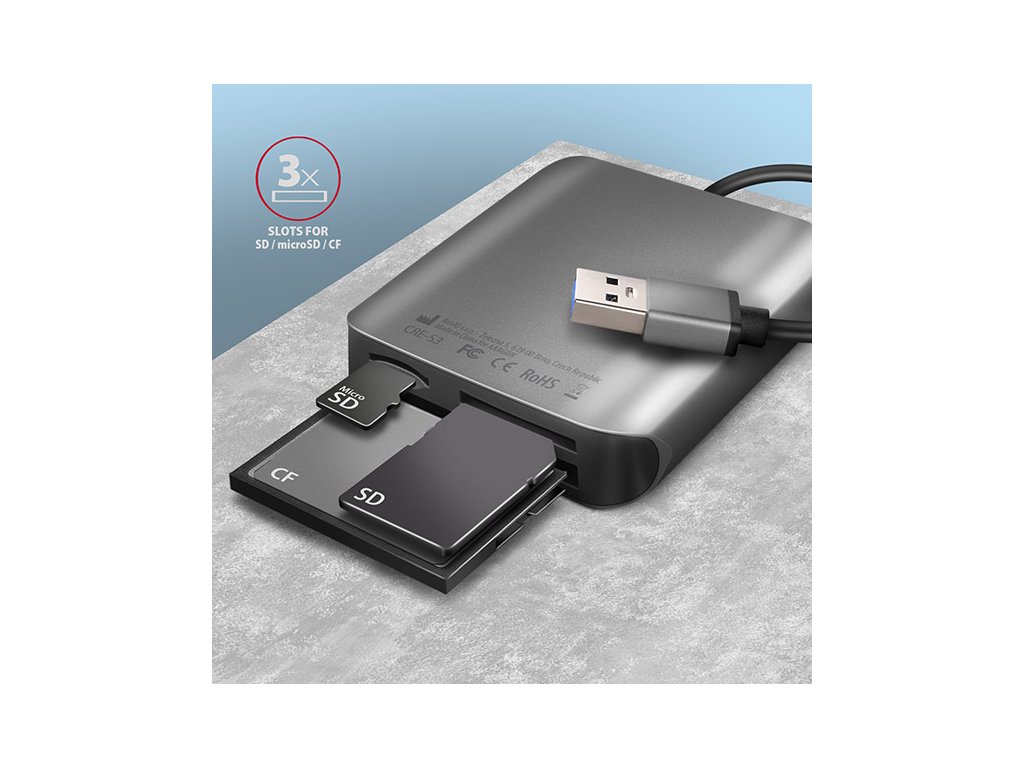AXAGON CRE-S3, USB-A 3.2 Gen 1 - čítačka kariet SUPERSPEED, 3-slot & lun SD/microSD/CF, podpora UHS-II