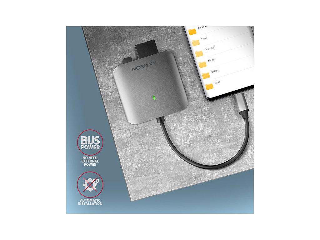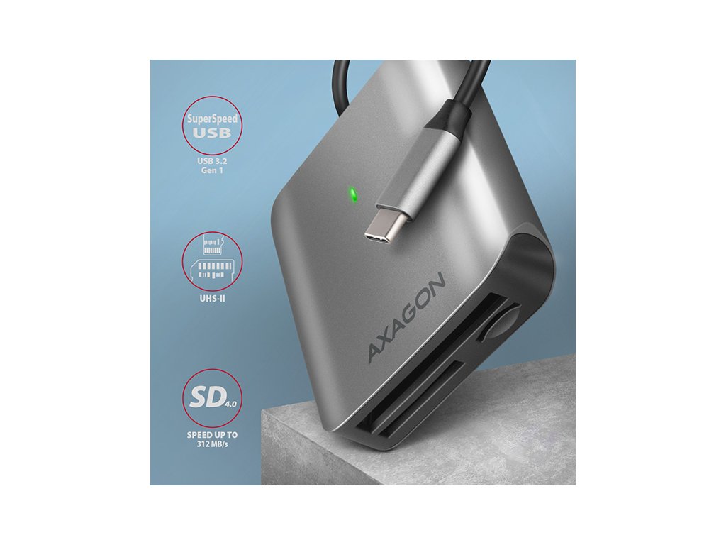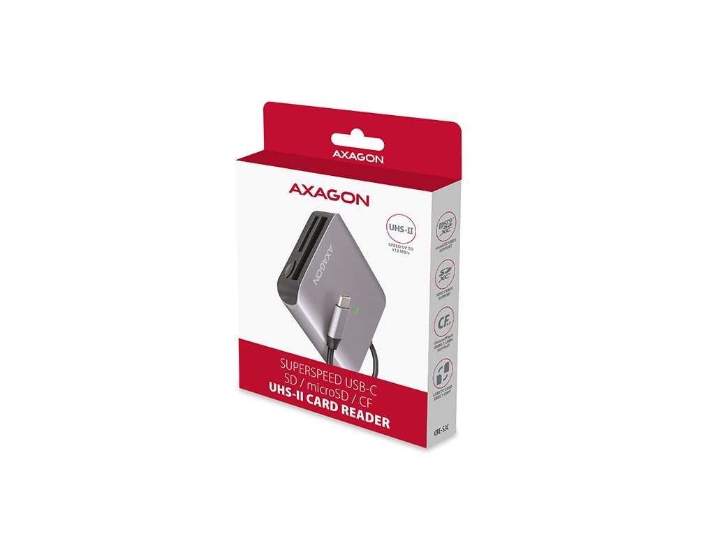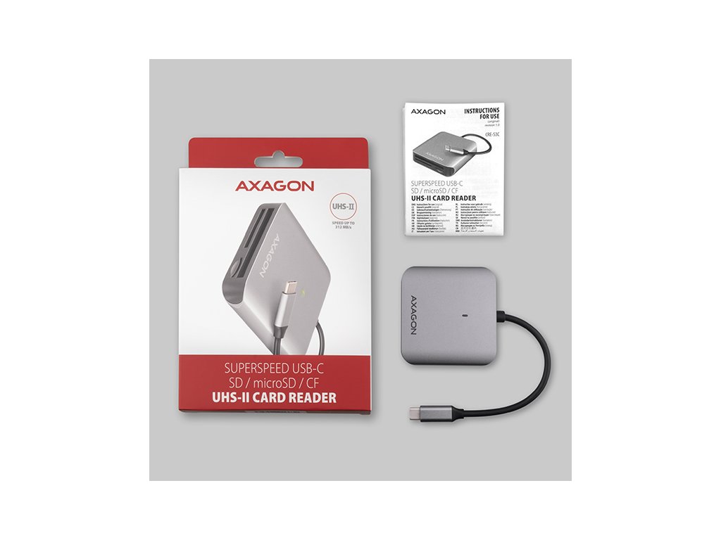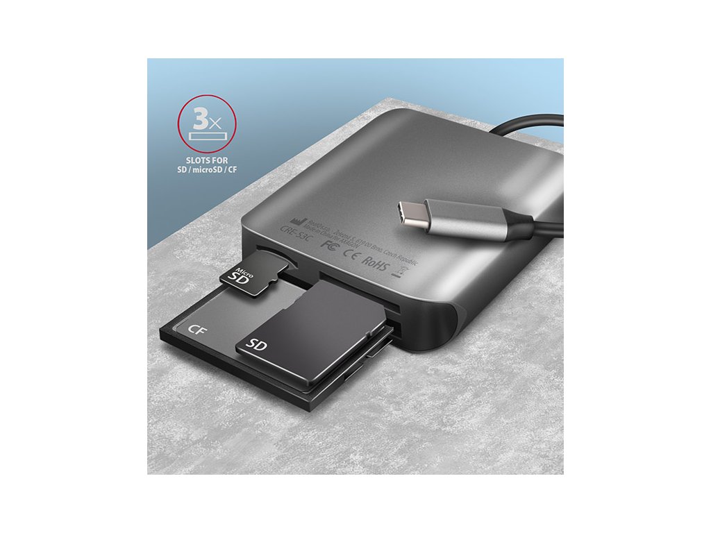AXAGON CRE-S3C, USB-C 3.2 Gen 1 - čítačka kariet SUPERSPEED, 3-slot & lun SD/microSD/CF, podpora UHS-II