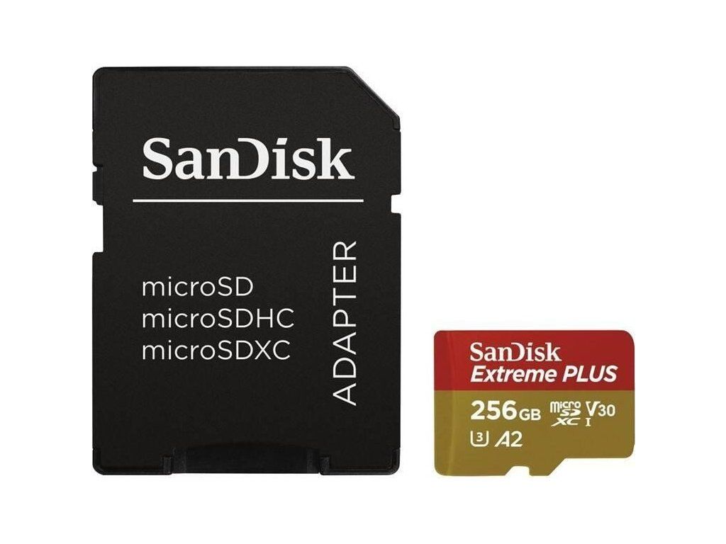 Karta SanDisk micro SDXC 256 GB Extreme PLUS (200 MB/s Class 10, UHS-I U3 V30) + adaptér