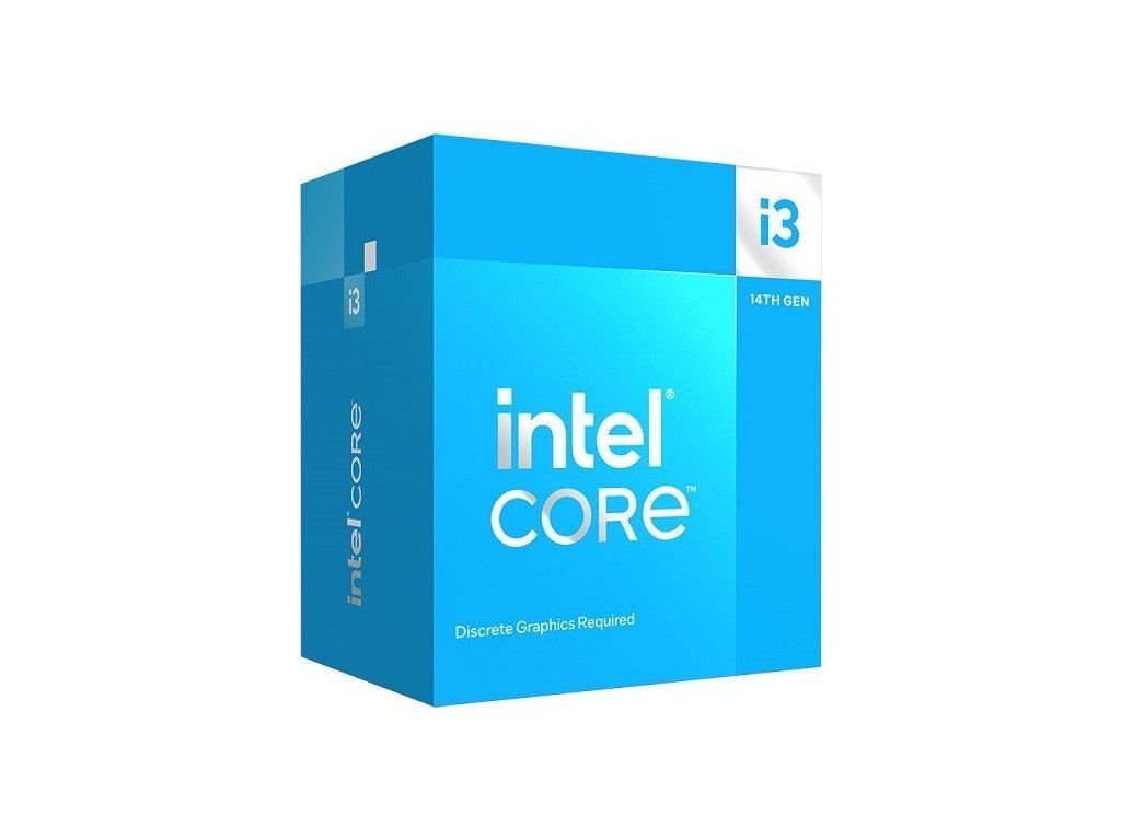 Stolné procesory Intel Core™ i3 (14. generácie) s podporou PCIe 5.0 a 4.0, DDR5 a DDR4 sú optimalizované pre produktivitu. Vyžaduje samostatnú grafickú kartu. Kompatibilné so základnými doskami založenými na čipsetoch Intel radu 700 a Intel 600. Základný výkon procesora 58 W. Vrátane Intel Laminar RM1.