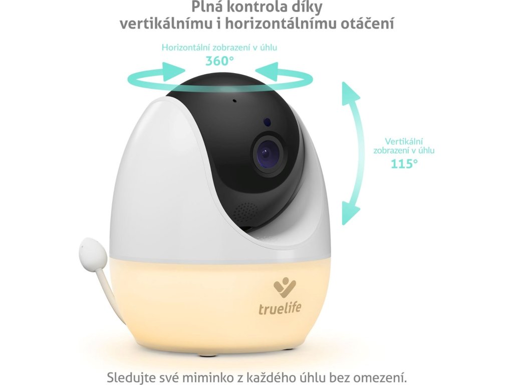 Kamere opatrovateľky naozaj nič neunikne. Prostredníctvom rodičovskej jednotky ju otočíte horizontálne o 355 ° a vertikálne o 105 °. Pozorovací uhol tak má 360 ° horizontálne a 115 ° vertikálne. Vidí skrátka všade.
