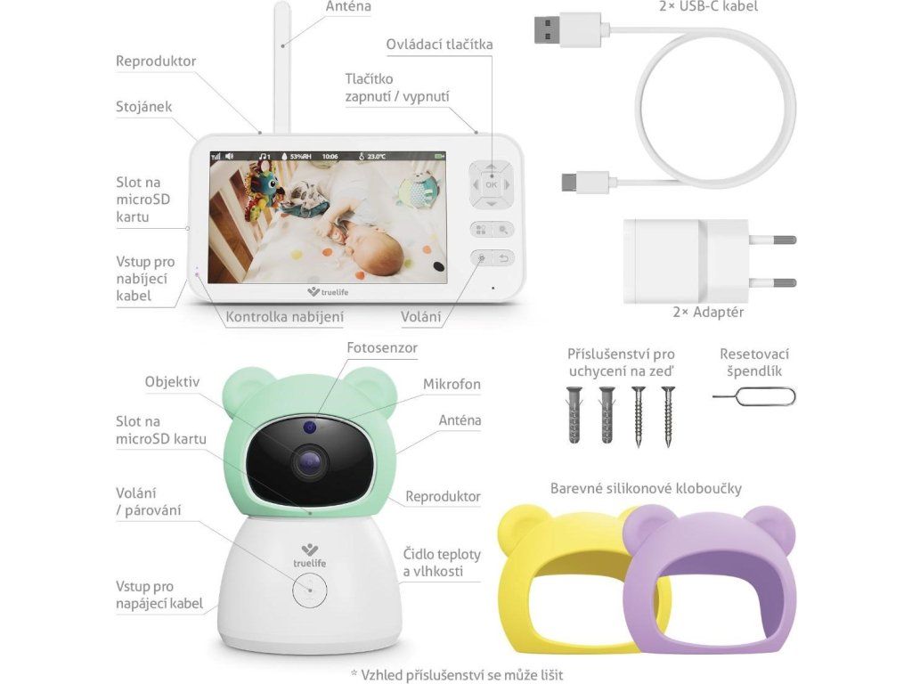 V balení nájdete sadu pre ľahké uchytenie na stenu. Pre ešte väčšiu flexibilitu je možné dokúpiť praktický držiak TrueLife NannyCam Holder, ktorý jednoducho obmotáte napríklad okolo postieľky.