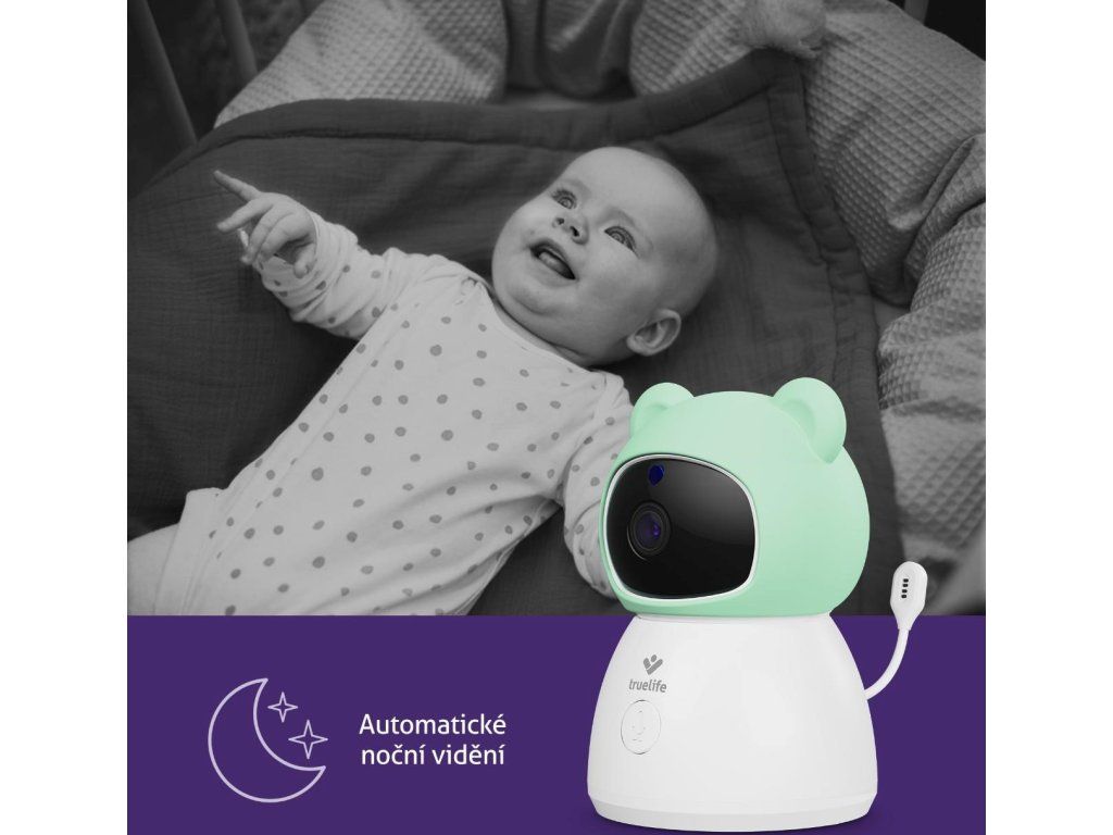 Technológia TrueLife SmartTrack múdro sleduje pohyb a automaticky otáča kameru tam, kde sa niečo deje. Vaše dieťatko tak zostáva v zábere, aj keď práve skúma každý kút izby.