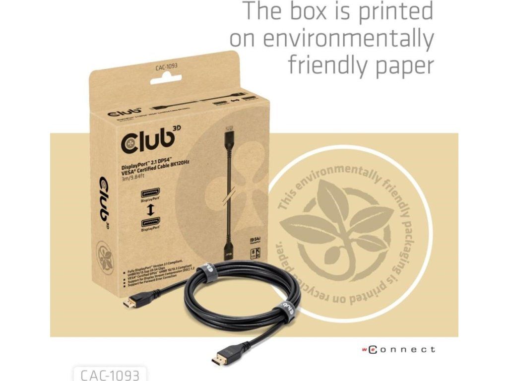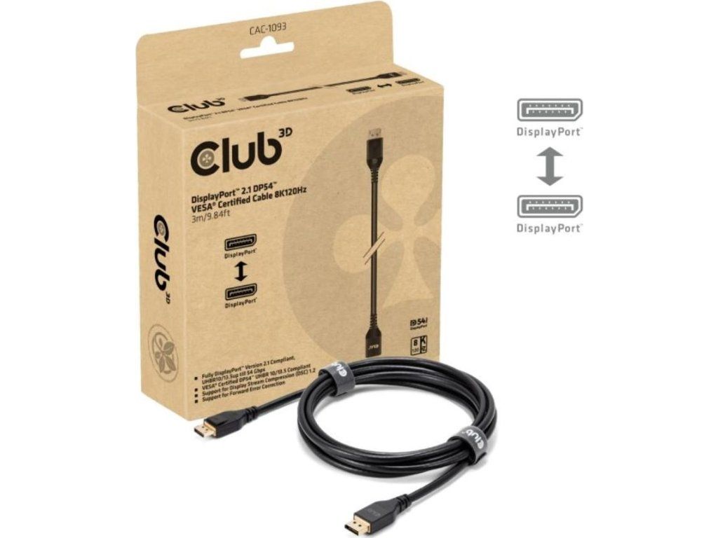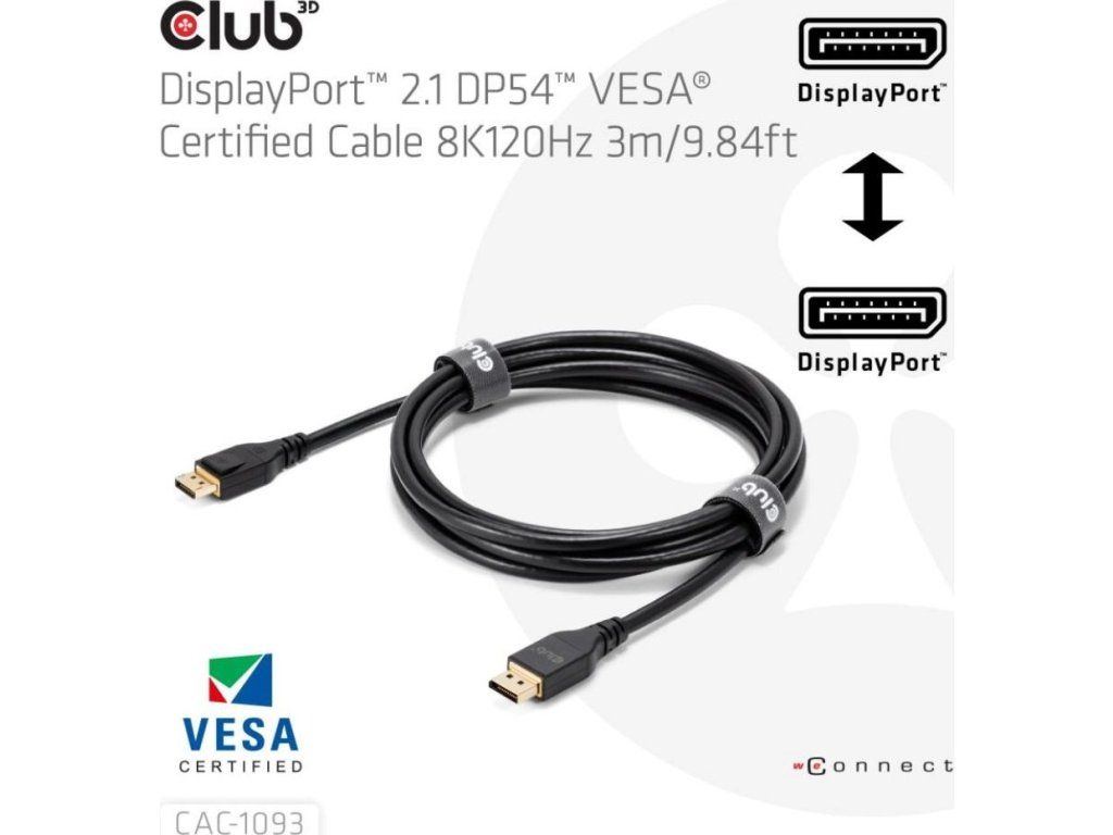 Club3D Kabel DisplayPort 2.1 na DisplayPort 2.1, VESA DP54, 4K240Hz/8K120Hz (M/M), 3m, černá