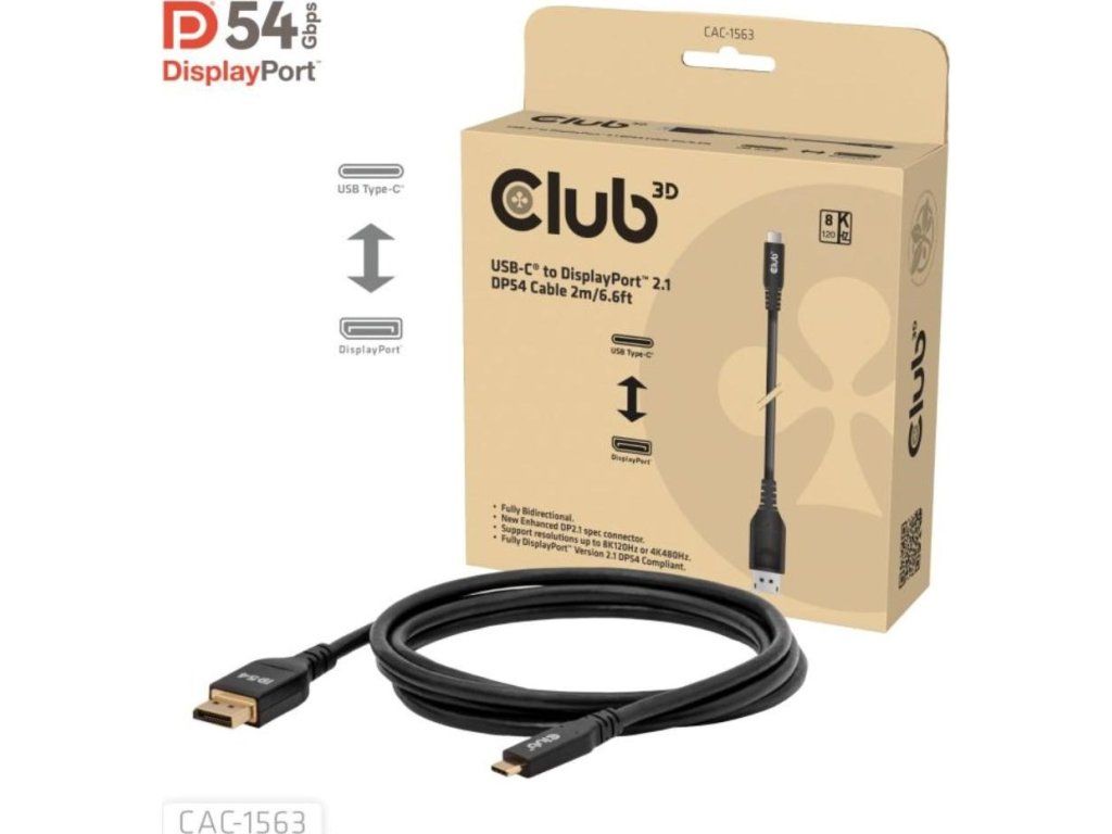Club3D Kabel USB-C na DisplayPort 2.1 DP54 Bi-Directional, 8K120Hz, 4K480Hz, 2m