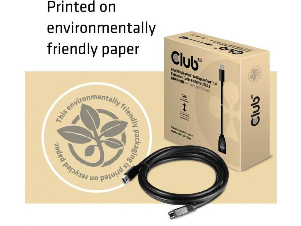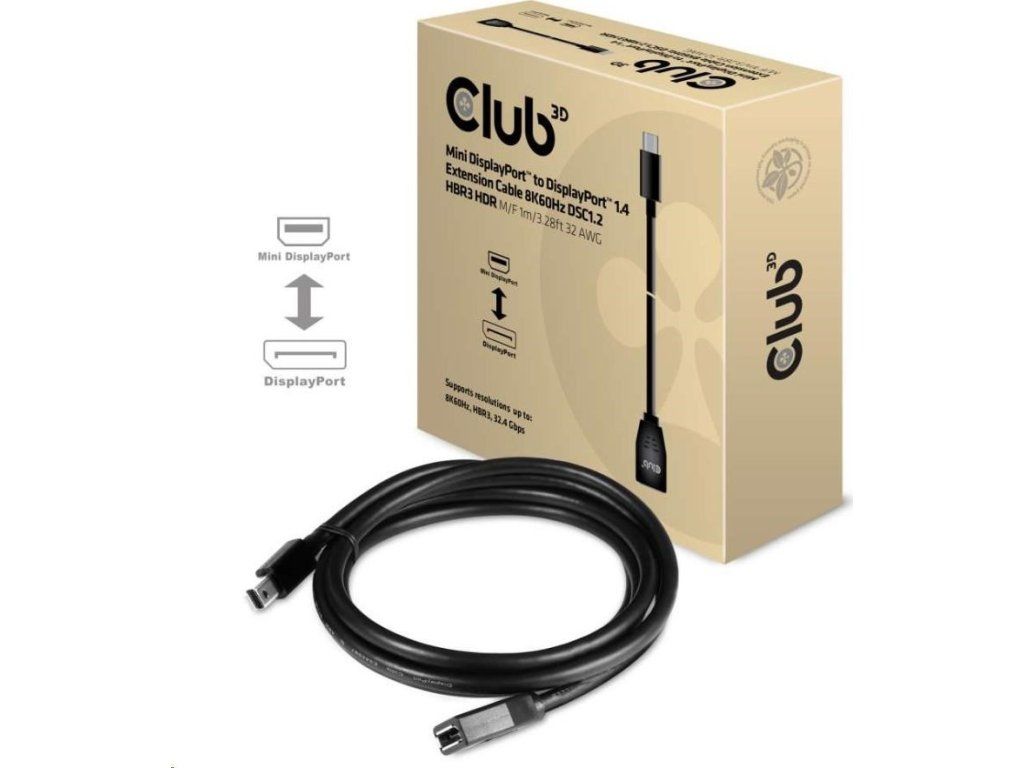 | Club 3D Mini DisplayPort™ na DisplayPort™ 1.4 Predlžovací kábel 8K60Hz DSC1.2 HBR3 HDR M/F 1m/3.28 stôp 32AWG |