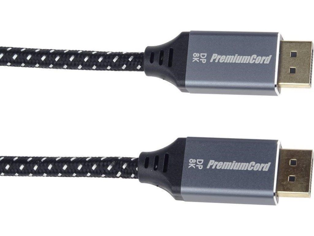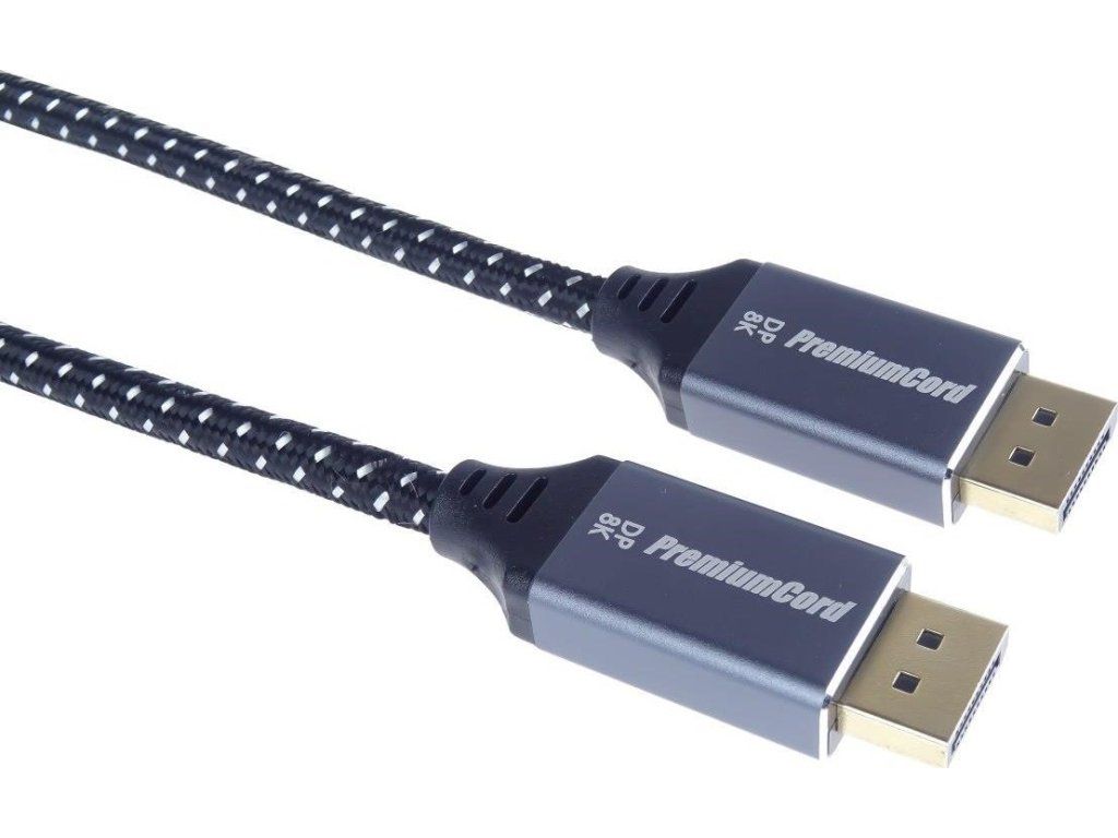 PremiumCord DisplayPort 1.4 pripojovacie káble M/M pre rozlíšenie 8K, kovové krytky a pozlátené konektory, 1 m