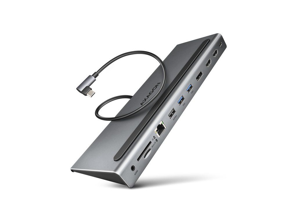AXAGON HMC-4KX3 USB 5Gbps hub, 3x USB-A, 2x HDMI, DP, RJ-45 GLAN, SD/microSD, audio, PD 100W, kábel USB-C 40cm