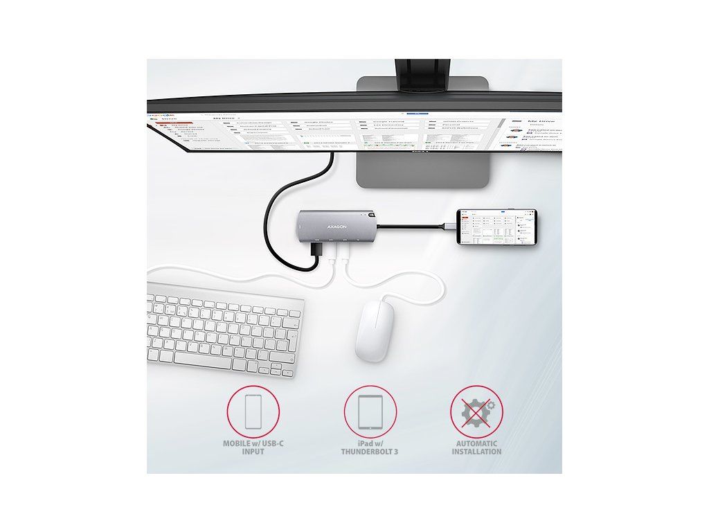 Vaše existujúce periférne zariadenia USB môžete v rozbočovači používať bez nutnosti kupovať nové. Vďaka funkciám Plug and Play a Hot Plug je samotné zapojenie rozbočovača veľmi jednoduché bez zložitej inštalácie a periférne zariadenia môžete ľahko pripájať a odpájať aj počas chodu počítača. Rozbočovač sa nevyhýba ani pripojeniu k telefónom s konektorom USB-C. K telefónu môžete pripojiť napríklad flash disk, klávesnicu, myš, monitor, televízor alebo projektor.