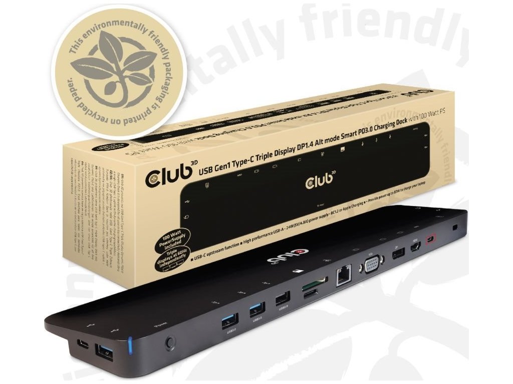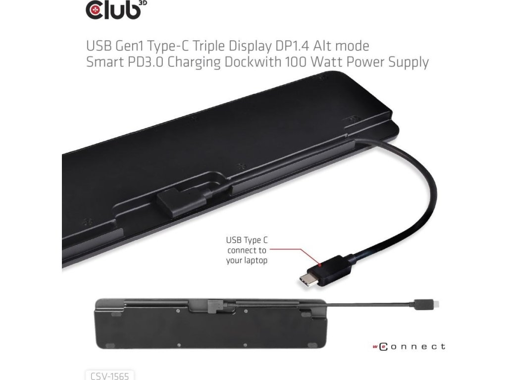 Club3D Dokovací stanice USB-C, Triple Display DP 1.4 Alt mode Smart PD3.0 Charging Dock with 100 Watt PS