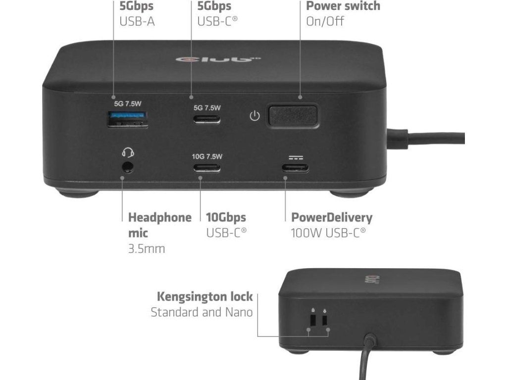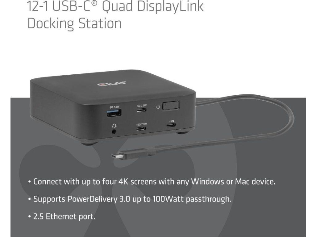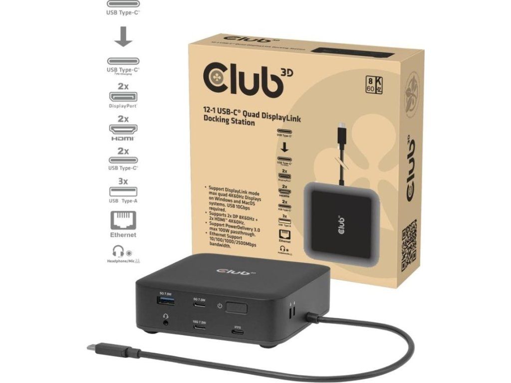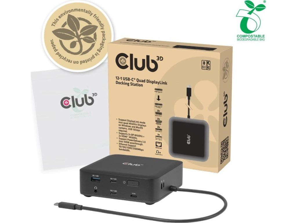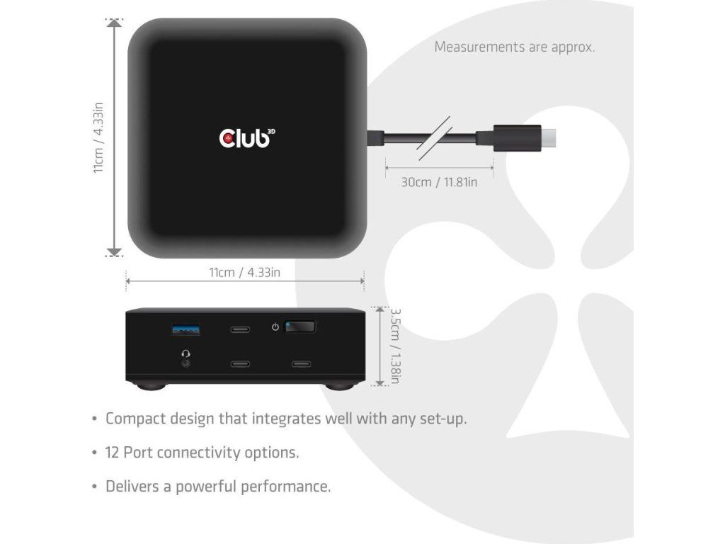 Club3D Dokovací stanice USB-C 12v1, 2xHDMI, 2xDP, 2xUSB-C, 1xUSB-C PD, 3xUSB, 1xRJ45, 1x3.5mm, černá