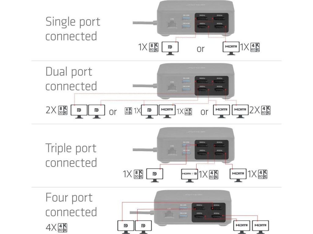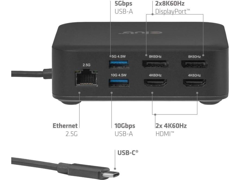 | Výstup | 1x USB-C PD 2x HDMI 2x DisplayPort 1x Ethernet 3x USB-A 2x USB-C 1x 3.5mm Jack |
