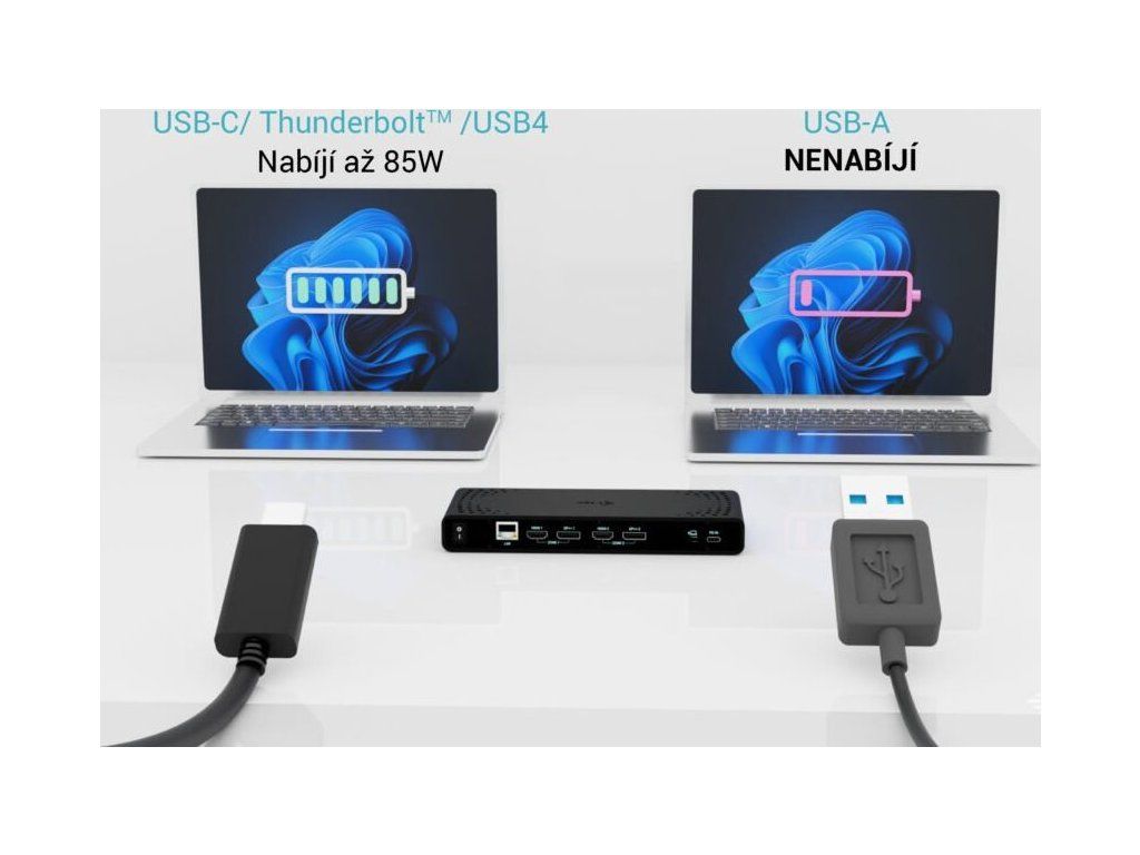 - Univerzálna dokovacia stanica kompatibilná s notebookmi a tabletmi s rozhraním USB-C, USB-A, USB4 a Thunderbolt.