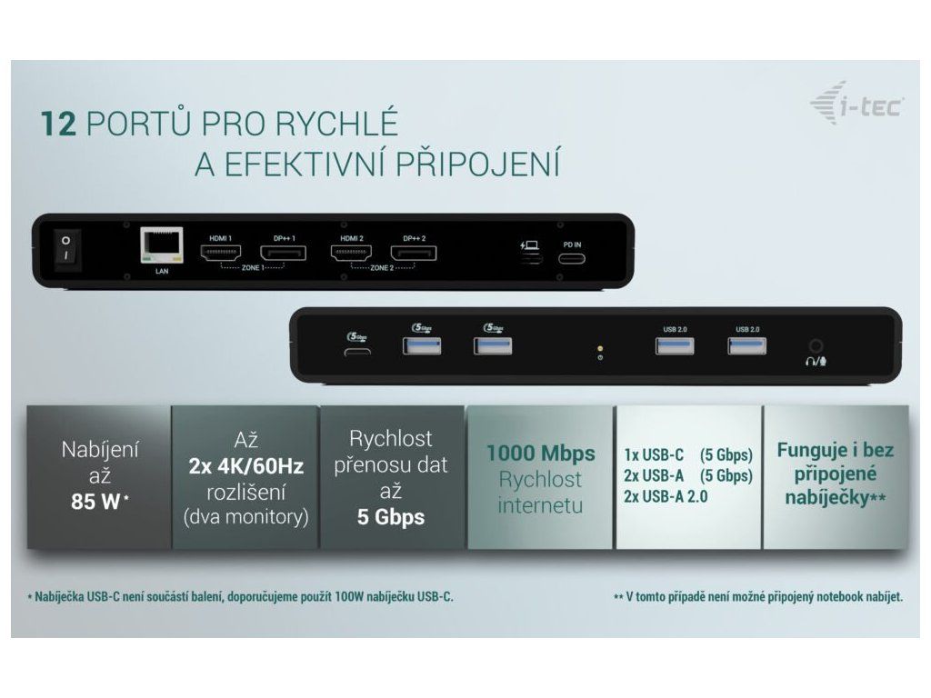 i-tec Univerzálna Dual 4K Display Docking Station + Power Delivery 85W