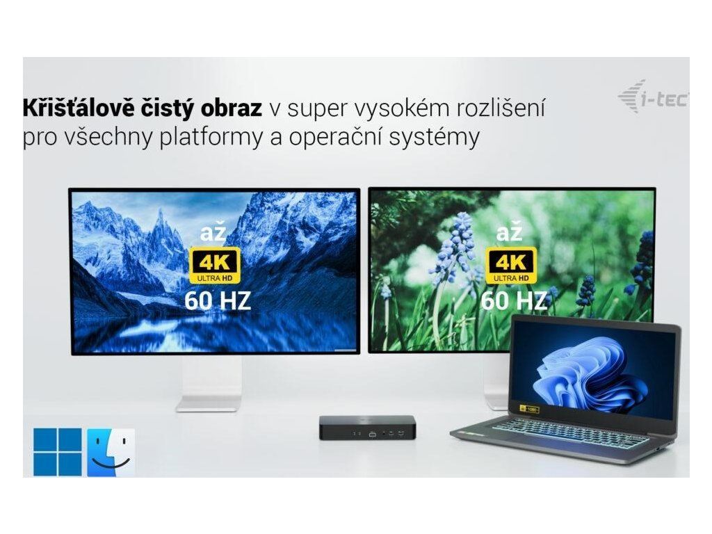 - Dokovacia stanica s veľmi vysokým výkonom a podporou pripojenia až dvoch externých monitorov v rozlíšení 4K/60 Hz (ľubovoľné zariadenie, ľubovoľný operačný systém)