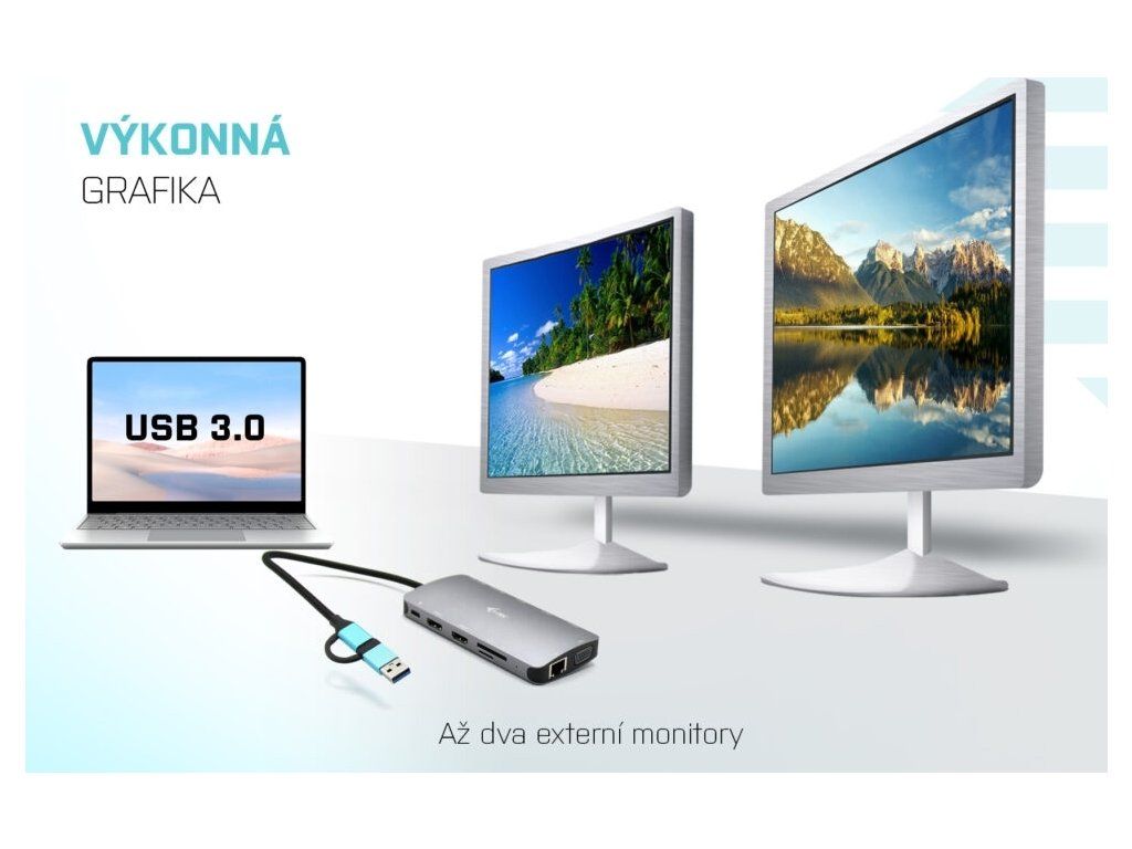 • 3 monitory – HDMI 1 + HDMI 2 + VGA až 4K/30Hz a 2x 1080p/60Hz
