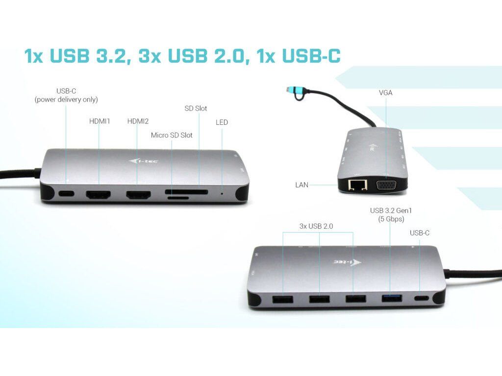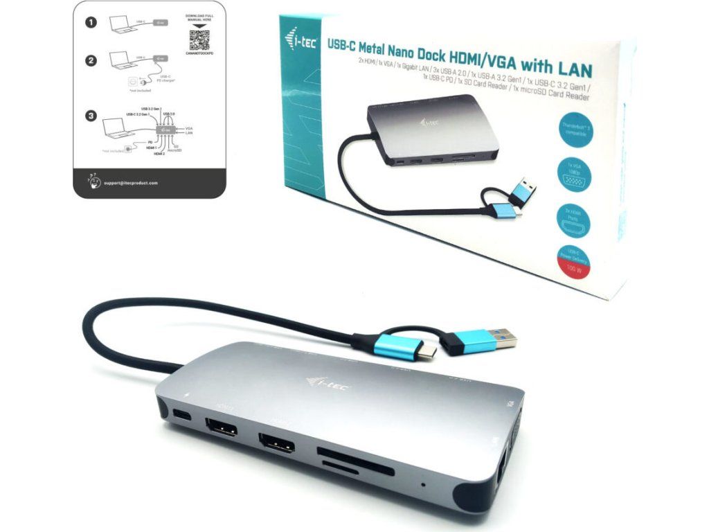 i-tec USB 3.0 USB-C/Thunderbolt 3x Display Metal Nano Dock with LAN, PD 100 W