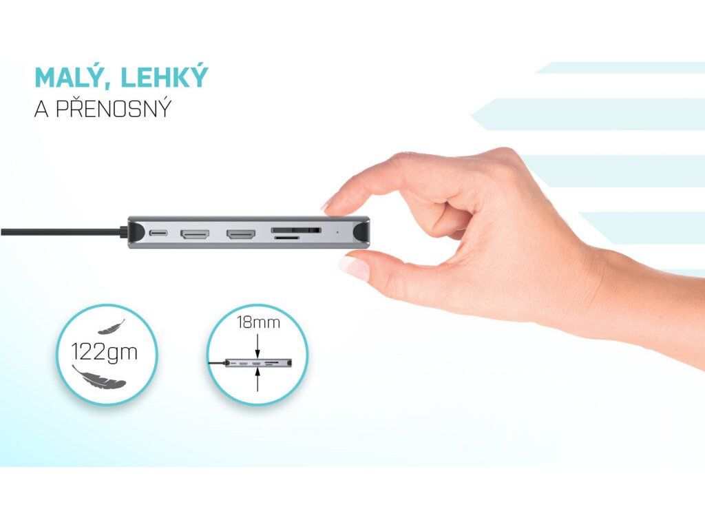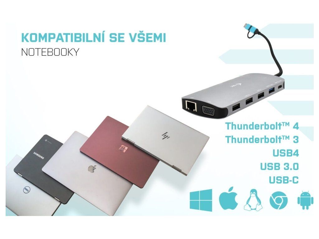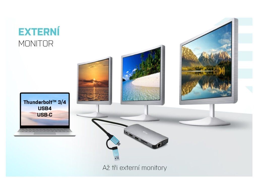 Výkonná, no napriek tomu malá a prenosná dokovacia stanica, ktorá podporuje výstup až na tri externé monitory. Dok možno použiť prakticky s akýmkoľvek notebookom, keďže podporuje pripojenie ku všetkým bežným portom: USB 3.0, USB-C, USB4 a Thunderbolt™ 3/4, a zároveň podporuje všetky bežné súčasné operačné systémy. Pripojenie k trom monitorom však bude možné len v prípade notebooku s portom Thunderbolt™ 3/4, prípadne USB-C portom podporujúcim prenos videa (tzv. USB-C DP Alt mode).