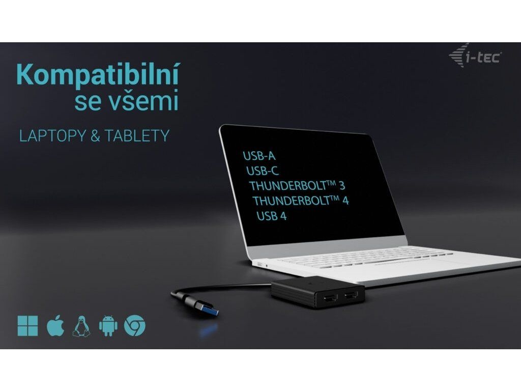 i-tec USB-A/USB-C Dvojitý 4K/60 Hz HDMI Video Adaptér
