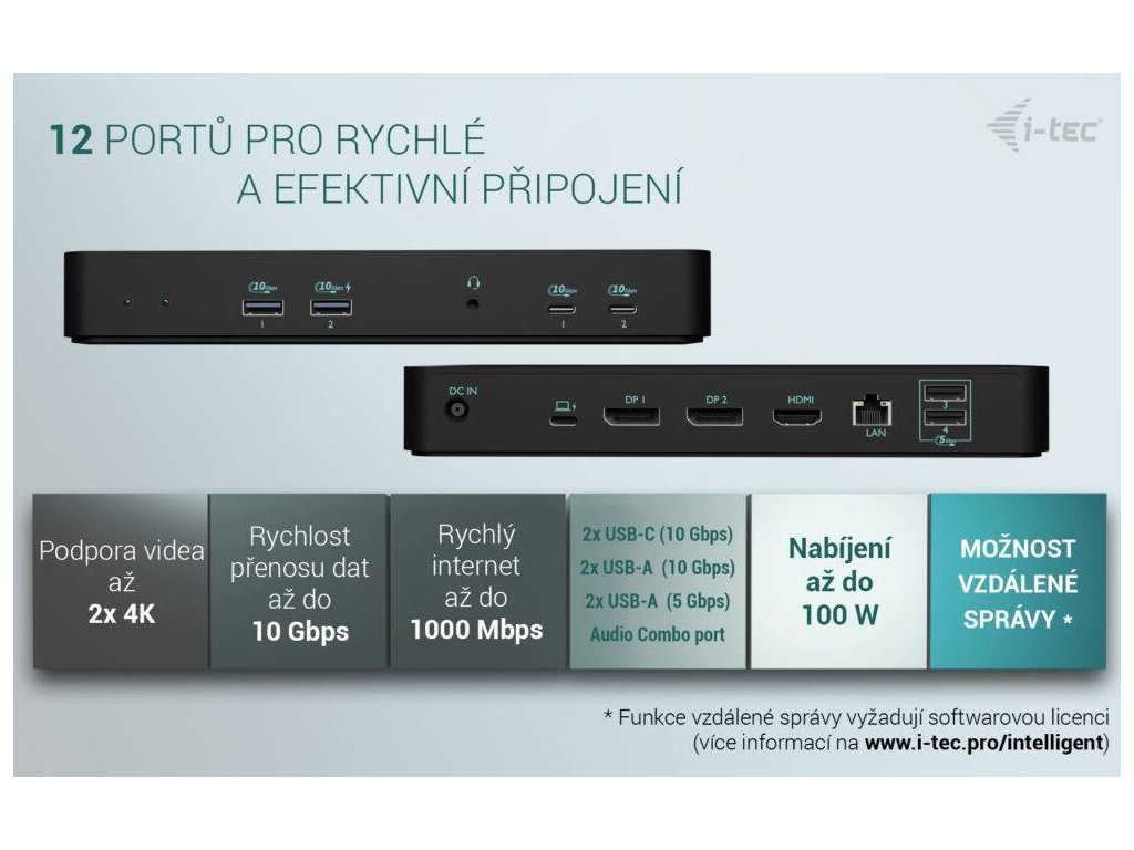 - Tato výkonná a univerzálna dokovacia stanica je vybavená dedikovaným LAN portom, ktorý umožňuje plnú vzdialenú správu – až na úroveň jednotlivých portov – odkadiaľkoľvek. Správa funguje aj bez pripojenia k hostiteľskému zariadeniu – postačuje napájanie a pripojenie do LAN.