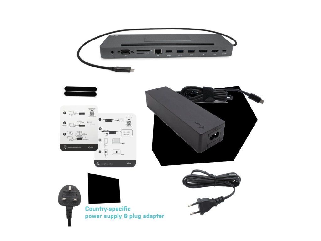 i-tec USB-C Metal Ergonomic 4K 3x Display Docking Station with Power Delivery 85W + i-tec Universal Charger 100W (bundle