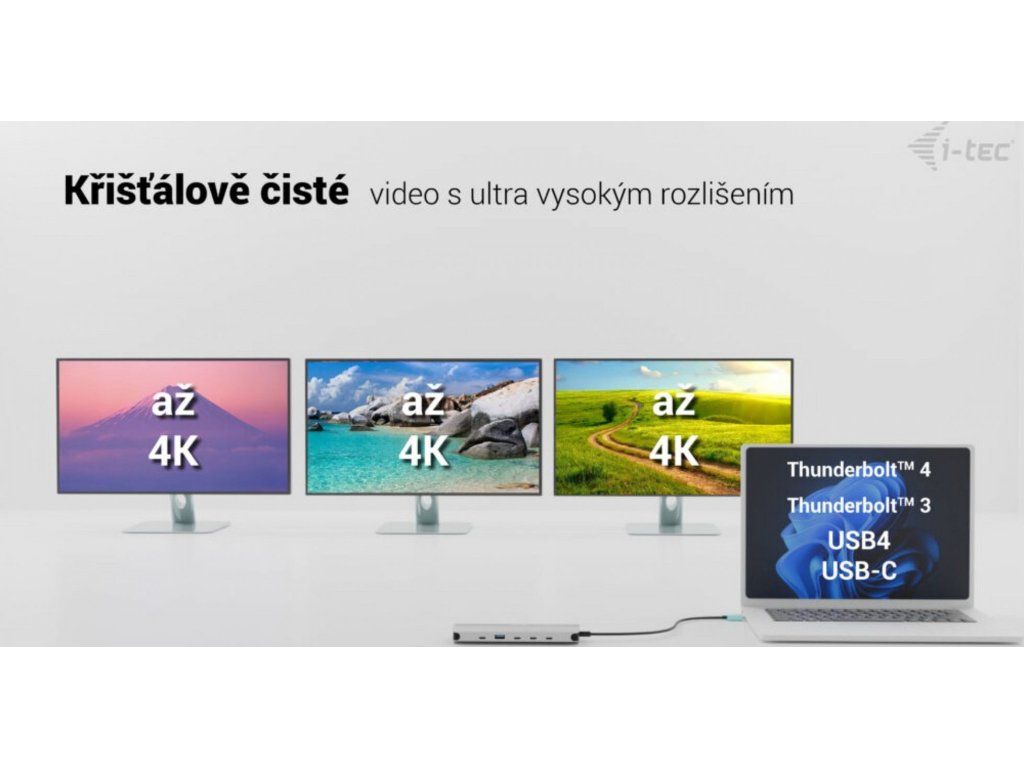 - 3 monitory – 2x HDMI + 1x USB-C MFDP – až 2x 4K/60Hz + 1x 4K/30Hz