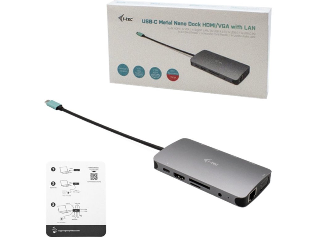 i-tec USB-C Metal Nano Dock HDMI/VGA s LAN + Nabíjačka 100W