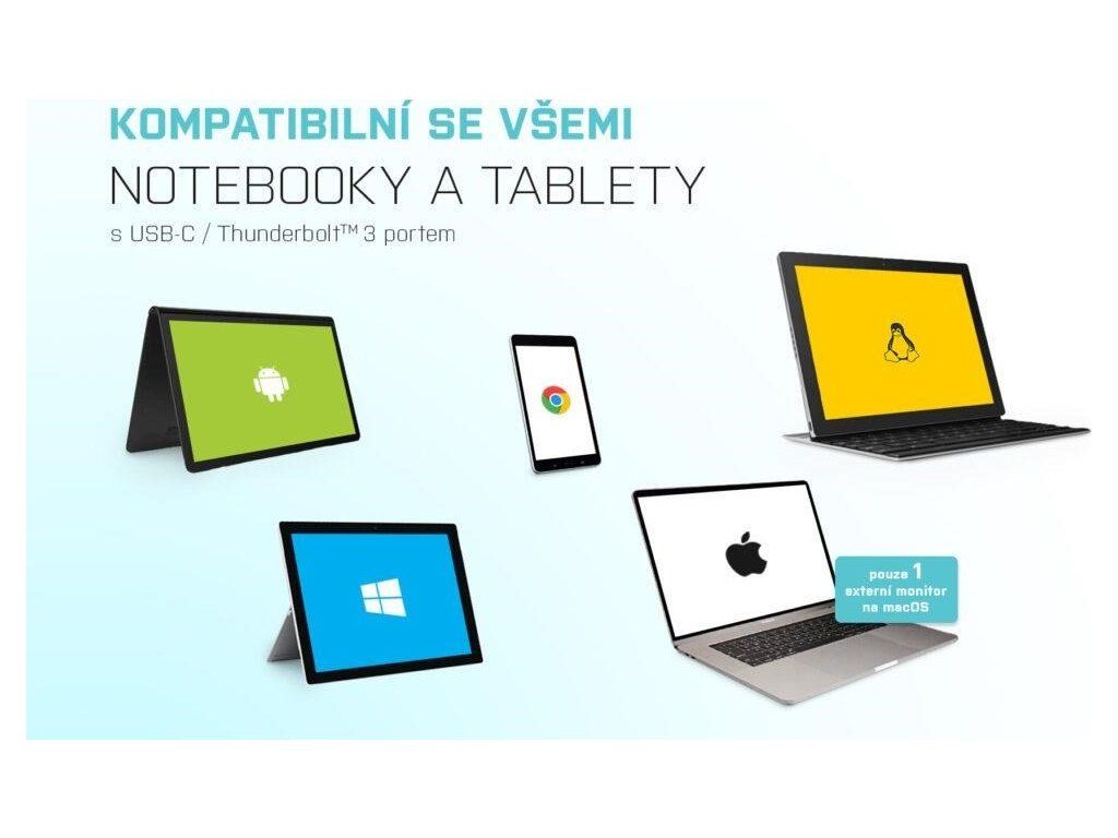 Dokovacia stanica je tiež plne kompatibilná s notebookmi a tabletmi vybavenými rozhraním Thunderbolt 3.