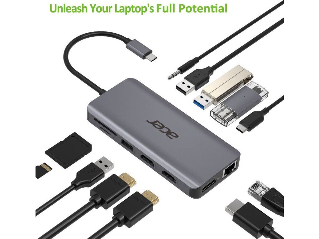 Kľúč ACER 12v1 typu C: 2 x USB3.2, 2 x USB2.0, 1x SD/TF, 2 x HDMI, 1 x PD, 1 x DP, 1 x RJ45, 1 x 3.5 Audio