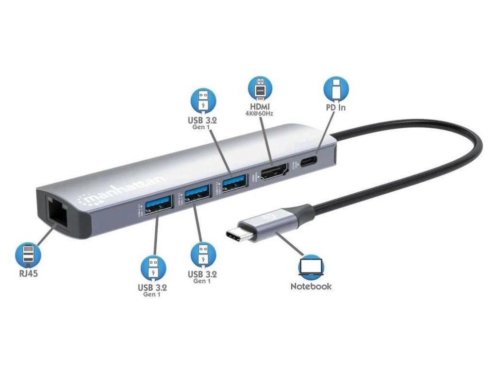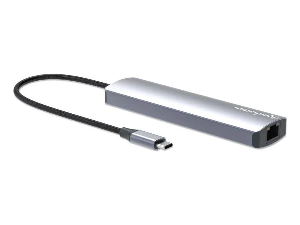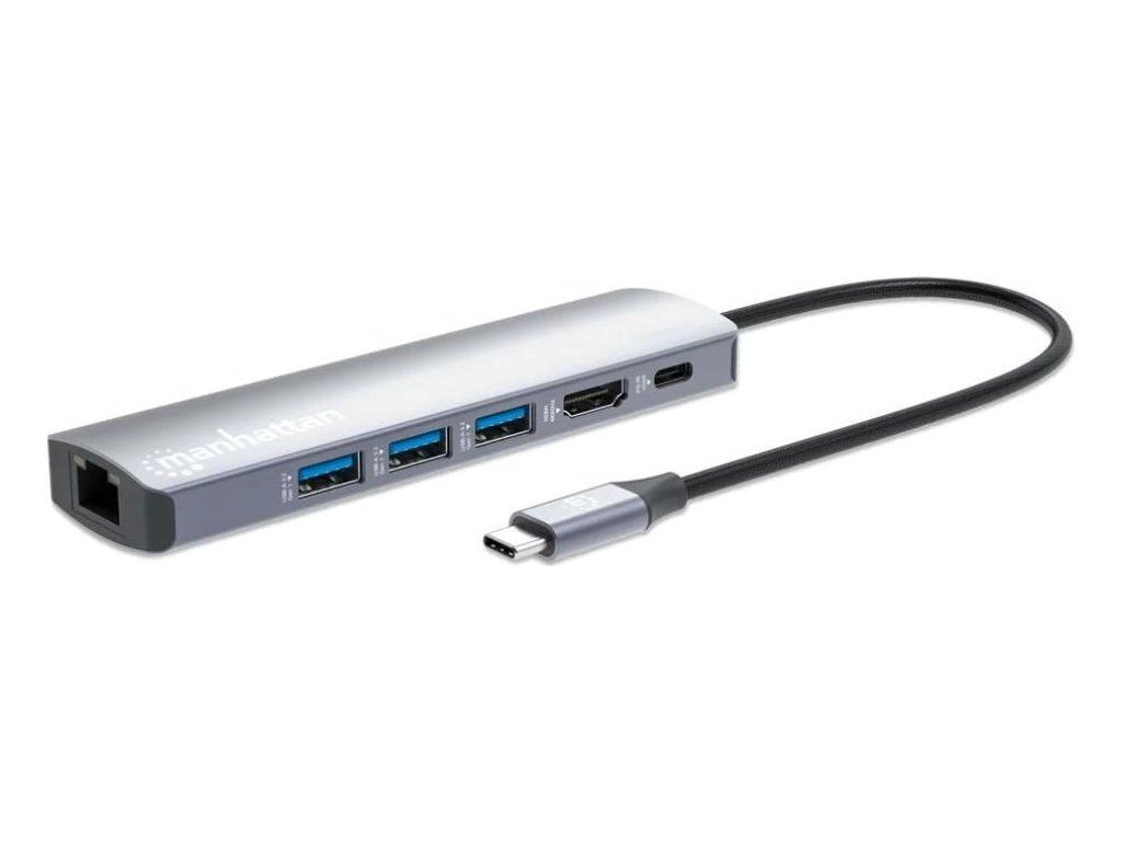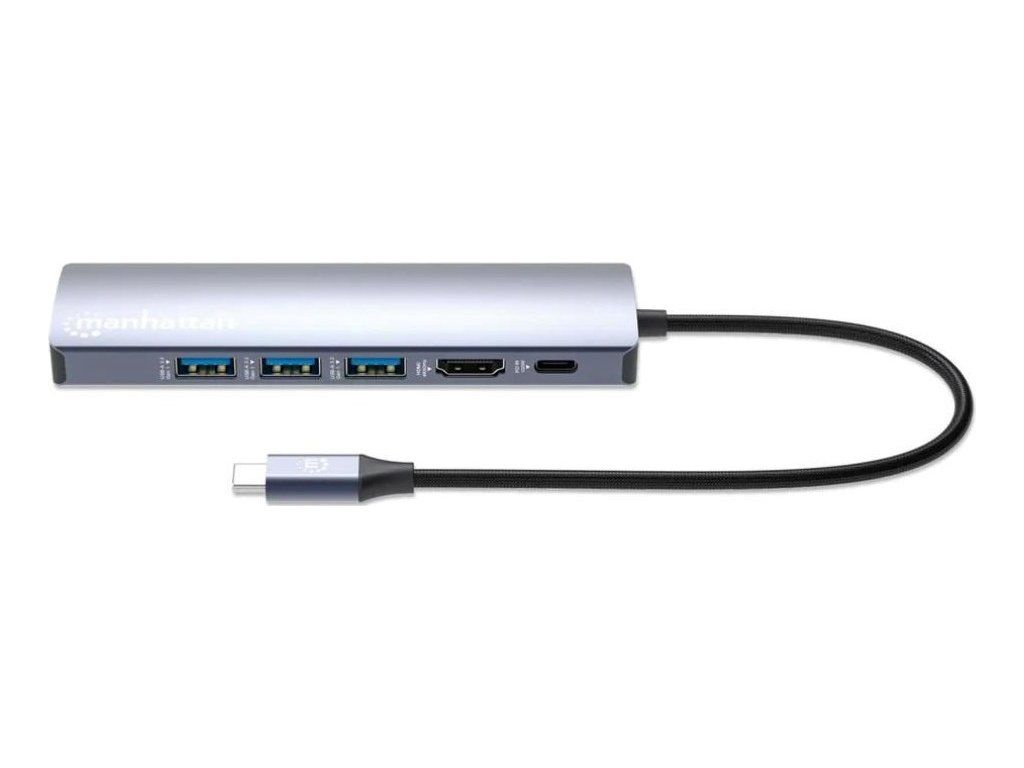 MANHATTAN Dokovací stanice USB-C 6v1, 1xHDMI, 1xUSB-C, 3xUSB, 1xRJ45, šedá