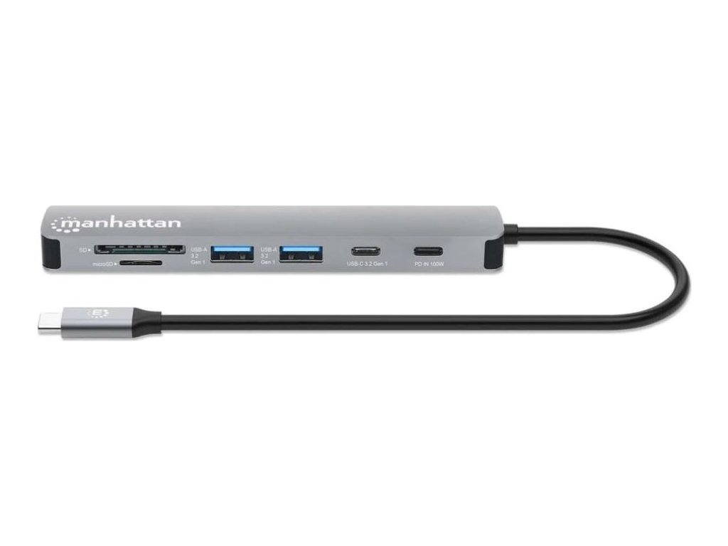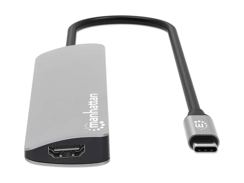 MANHATTAN Dokovací stanice USB-C 7v1, 1xHDMI, 2xUSB-C, 2xUSB, čtečka SD karet, šedá