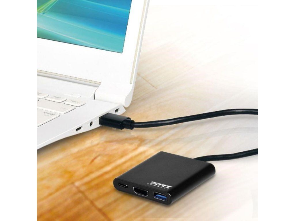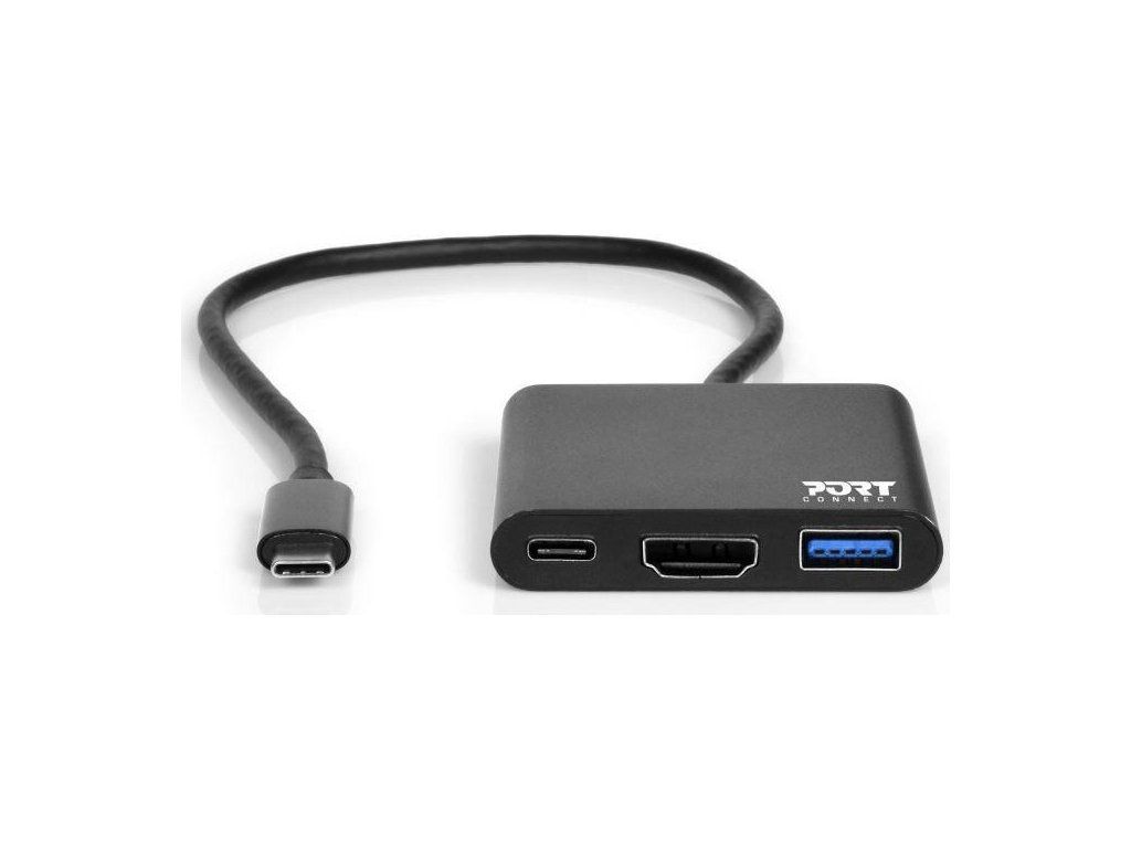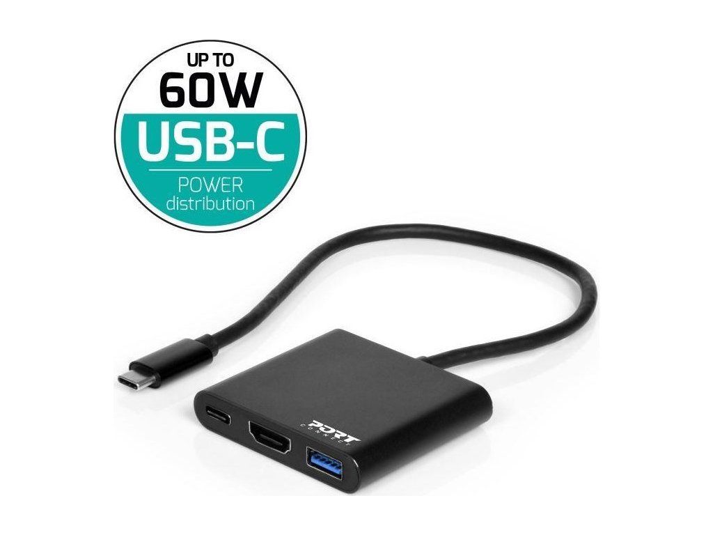 PORT HUB USB-C, HDMI 1X 4K + USB-A + USB-C, černá