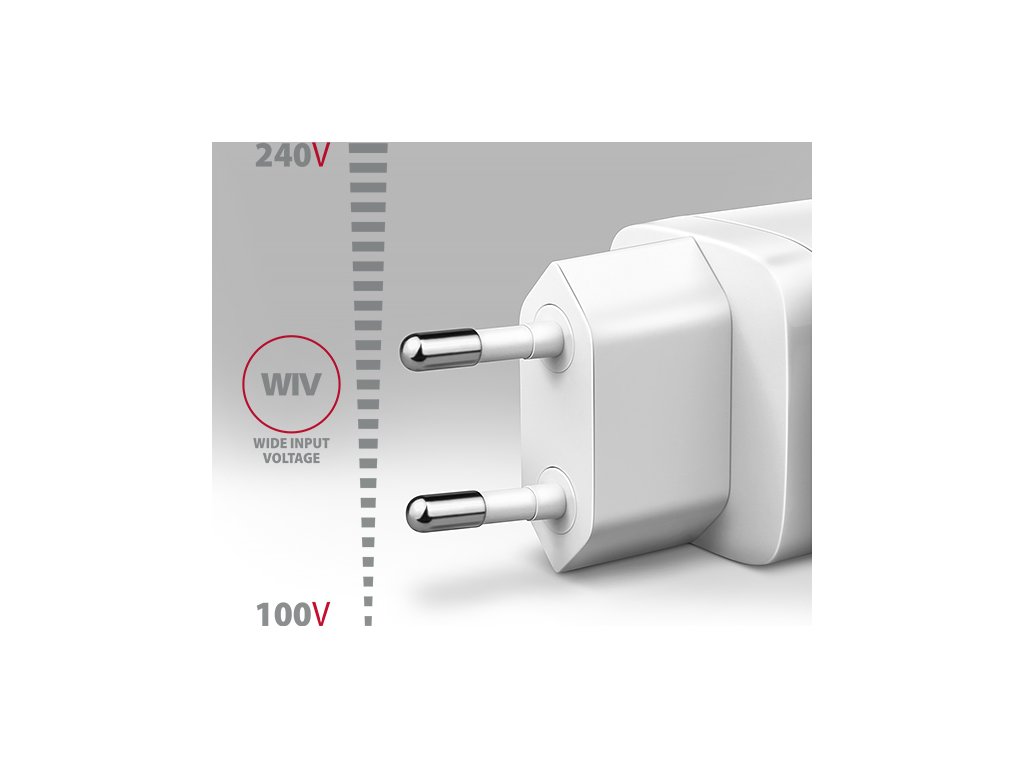 Telo napájacieho adaptéra má príjemný tvar a kompaktné rozmery. Kombinácia malých rozmerov a širokého rozsahu vstupného napätia robí z tejto nabíjačky ideálneho pomocníka na cesty.