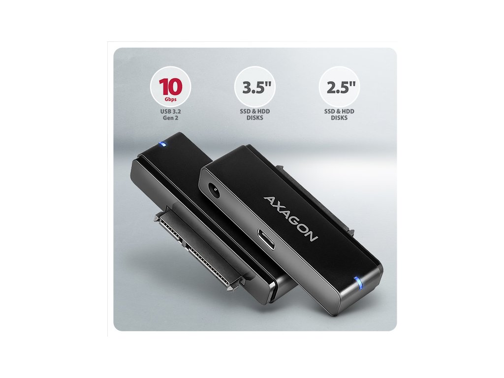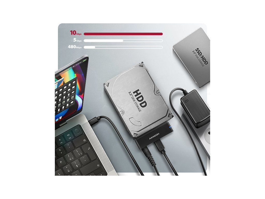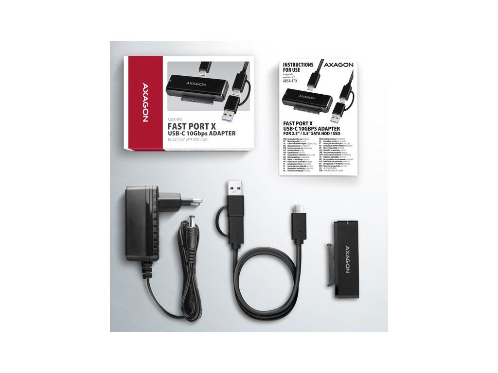 AXAGON ADSA-FPX, USB-C 10Gbps - SATA 6G, 2.5"/3.5" SSD/HDD FAST PORT X adaptér, vrátane AC napájača