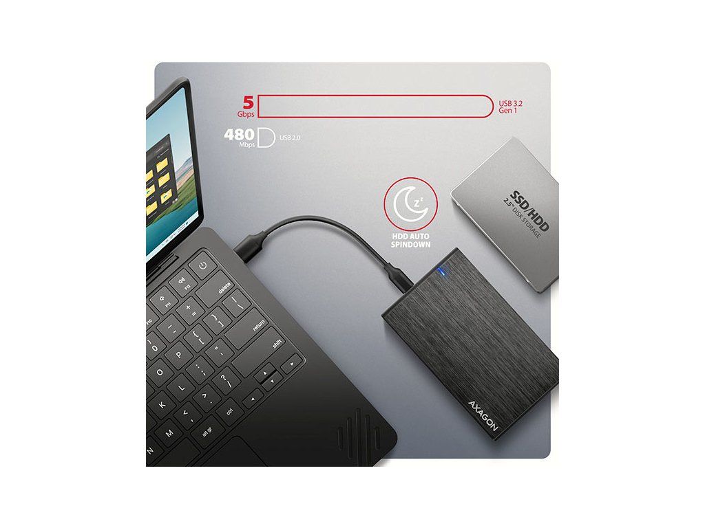 • USB-C 5Gbps externý box pre 2.5" SATA disk,