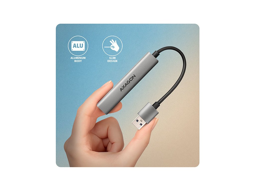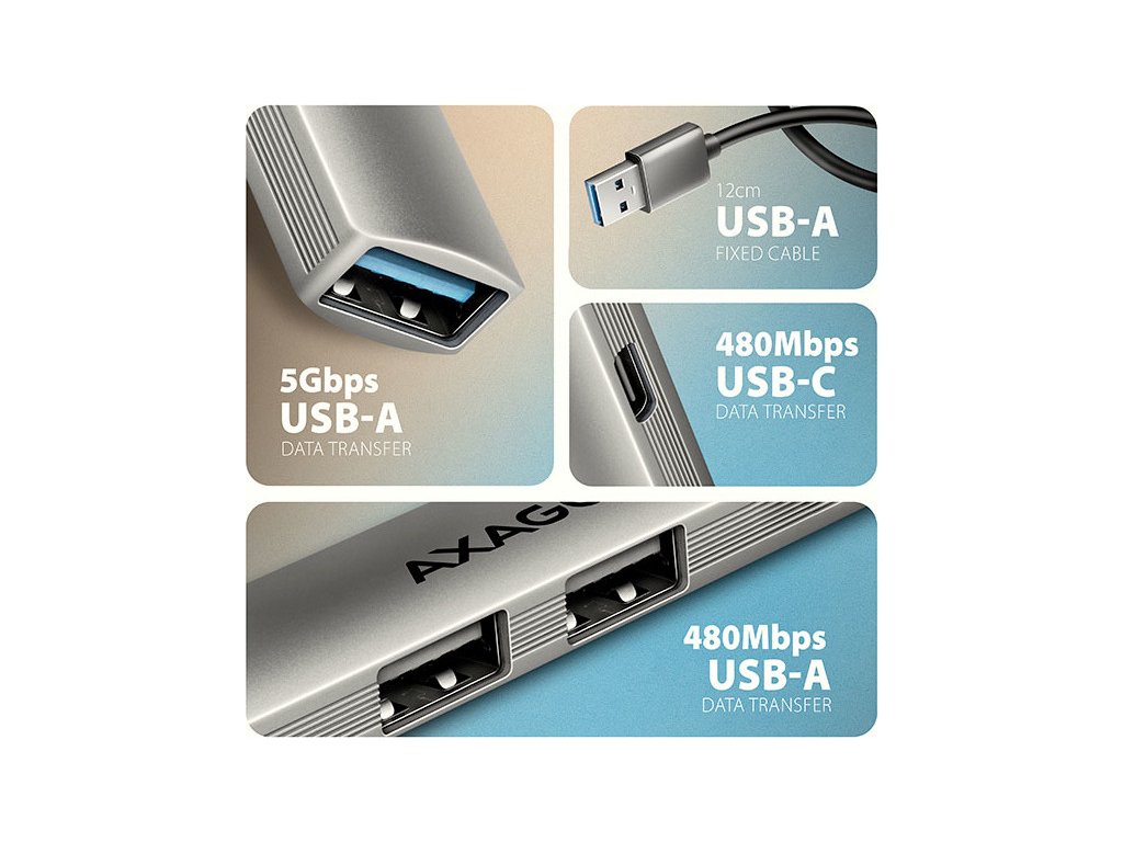 AXAGON HUE-STA, 4x USB ALU STRIP hub, 1x USB-A 5Gbps, 2x USB-A & 1x USB-C 480Mbps, kábel USB-A 12cm