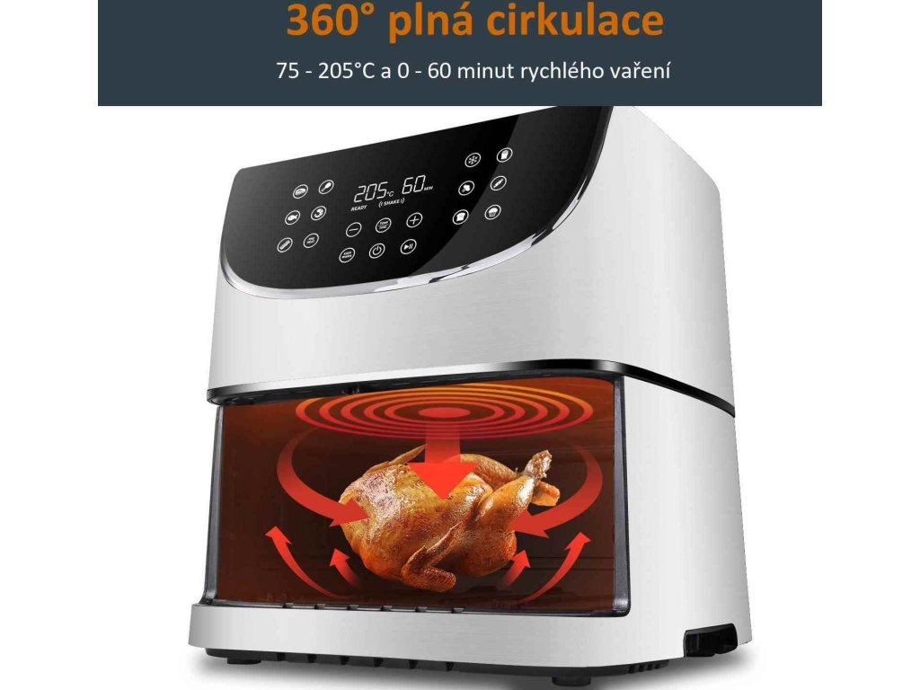 Horúci vzduch rotuje okolo jedla zo všetkých strán a tým dosahuje kvalitné a rovnomerné prepečenie a uvarenie pokrmov. Vďaka tejto technológii sa fritéza predohreje behom 5 minút.