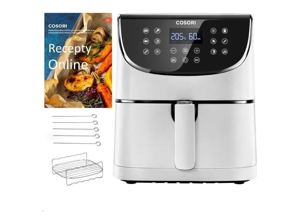 Cosori CP158-AF PREMIUM – 5.5L horkovzdušná fritéza + 5x špíz a gril. rošt, white