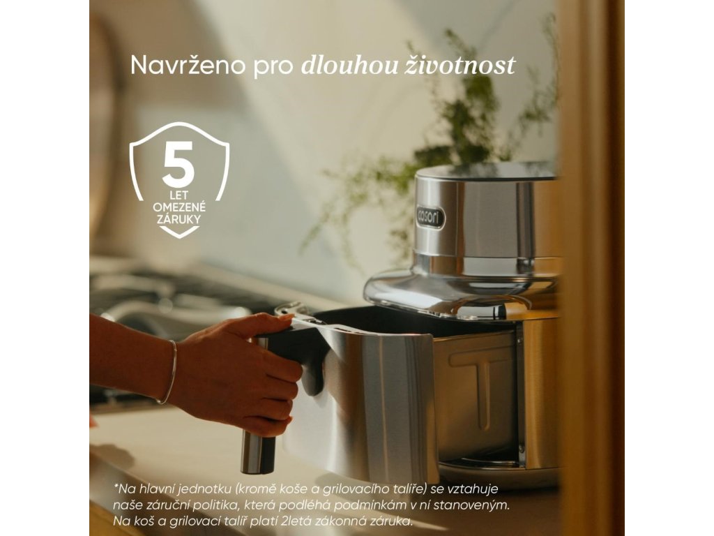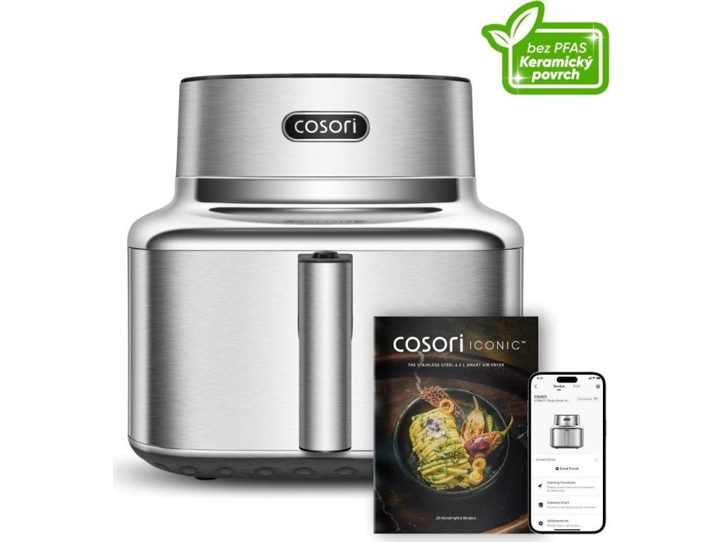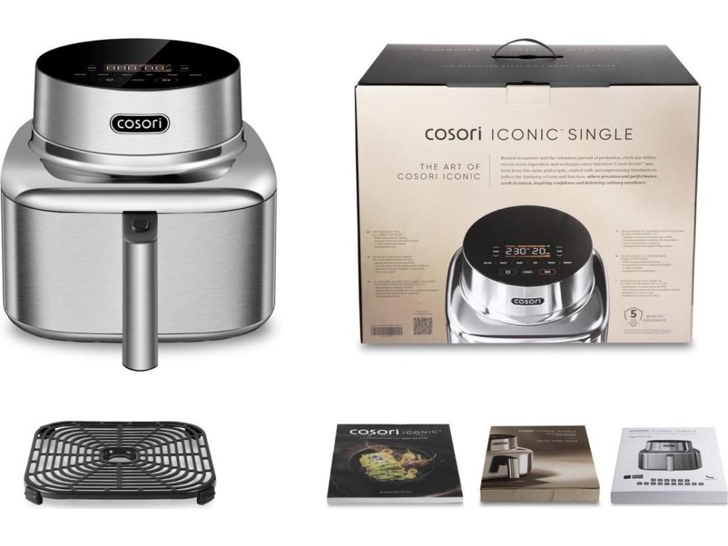 Súčasťou balenia je elegantná kuchárska kniha plná inšpirácie, dostupná aj v online českej verzii, ktorá vás krok za krokom prevedie zdravým varením. Predĺžená 5-ročná záruka*, testovaná životnosť 2000 hodín a odolnosť voči 300 cyklom umývania v umývačke riadu dokazujú, že Iconic je stvorený pre roky každodenného potešenia. To všetko v tele, ktoré vyzerá rovnako dobre, ako varí. COSORI Iconic nie je spotrebič – je to životný štýl, v ktorom sa dizajn, zdravie a výkon spájajú v dokonalej harmónii.