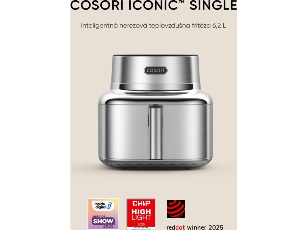 COSORI Iconic nie je len ďalšia fritéza – je to tiché dizajnové manifest pre modernú kuchyňu. Minimalistické línie, ušľachtilá nehrdzavejúca oceľ a tvrdené sklo vytvárajú objekt, ktorý vyzerá skôr ako štýlový doplnok než ako spotrebič. Každý detail je navrhnutý tak, aby prinášal pokoj, rovnováhu a radosť z používania. Víťaz ocenenia Red Dot Design Award 2025 dokazuje, že krása a funkčnosť idú ruka v ruke.