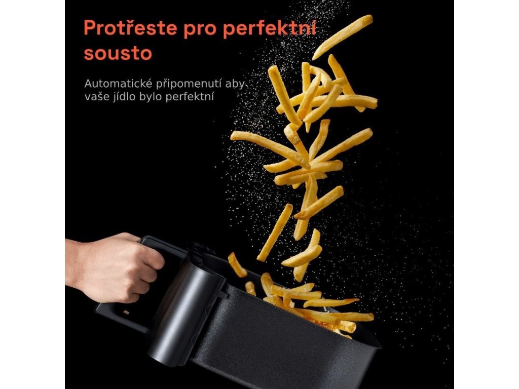SHAKE - Všimnite si odporúčané miešanie koša pre 100 % rovnomerné opečenie, ideálne na opekanie zeleniny alebo miešanie hranolčekov. Funkciu možno vypnúť pri príprave jedla, ktoré ju nepotrebuje. Upozornenie na potrebu miešania potravín