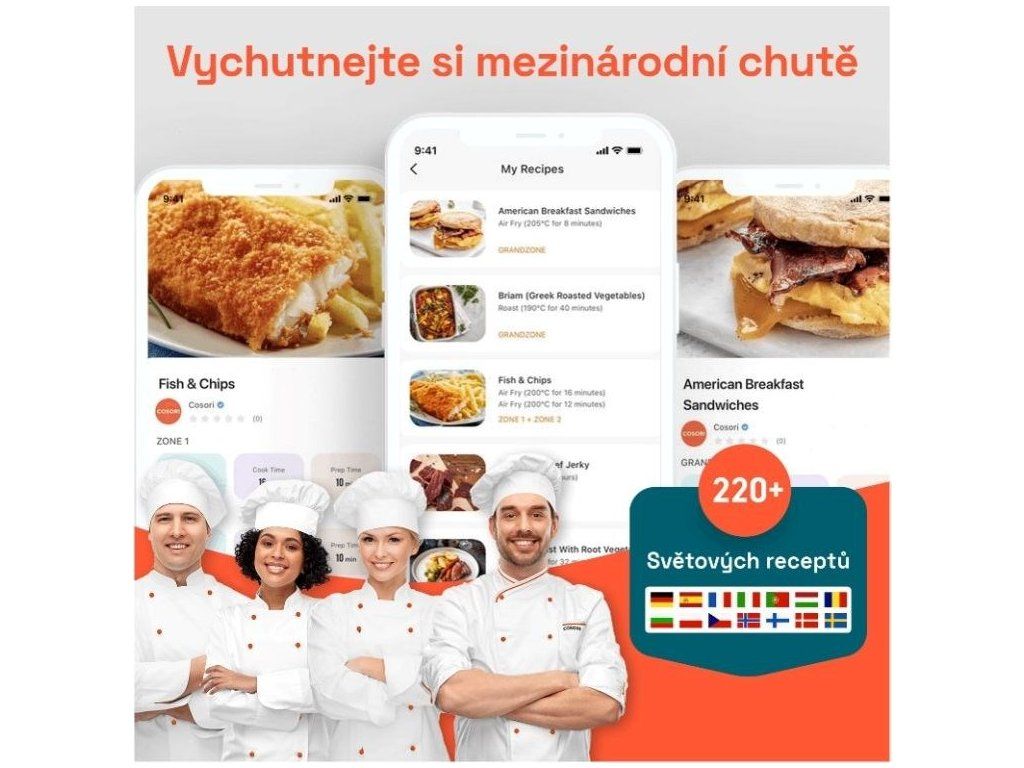 Fritéza Cosori Turbo Tower bola navrhnutá v Kalifornii a vyvinutá tímom kuchárov Cosori. Aplikácia obsahuje viac ako 200 medzinárodných receptov, ktoré môžete vďaka jednoduchosti prípravy vo fritéze ľahko pripraviť pre svojich blízkych.