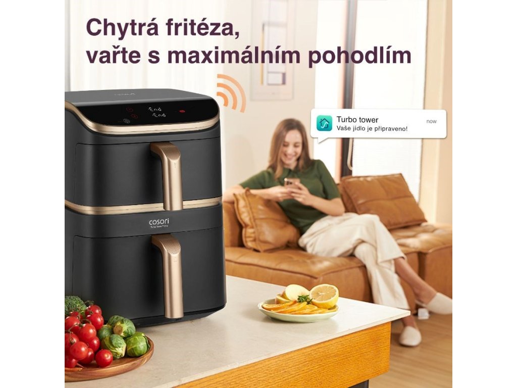 Predstavujeme vám revolučnú teplovzdušnú fritézu Cosori Turbo Tower Pro Smart. Stane sa dokonalým kuchynským pomocníkom, ktorý posunie varenie na novú úroveň. Táto inovatívna teplovzdušná fritéza s pôsobivým objemom 10,8 litrov je ideálna na prípravu výdatných jedál pre rodinu a spoločenské udalosti.